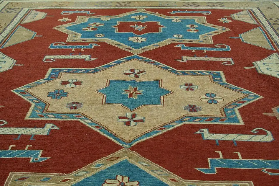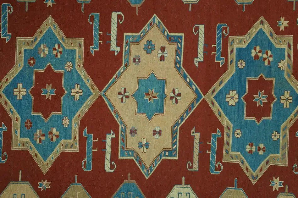 Безворсовый ковер (сумах) из шерсти высшей категории. Дагестанский орнамент соткан (по заказу ANSY) c соблюдением традиционной технологии ручного ковроткачества. Высокая плотность плетения.