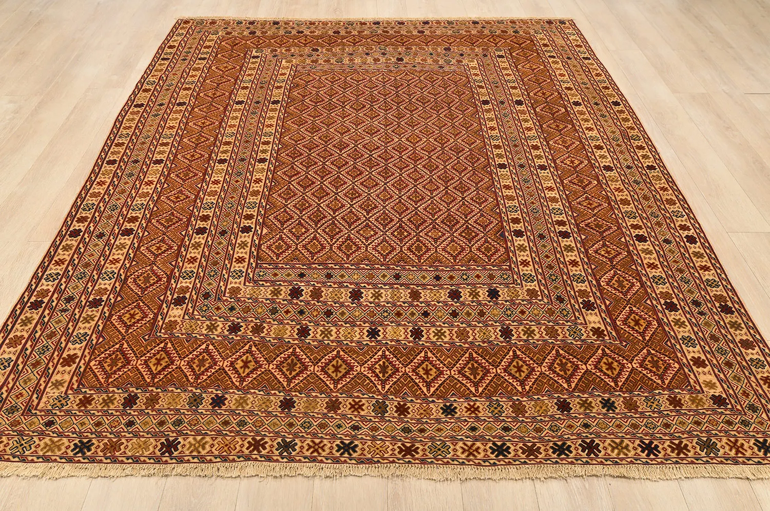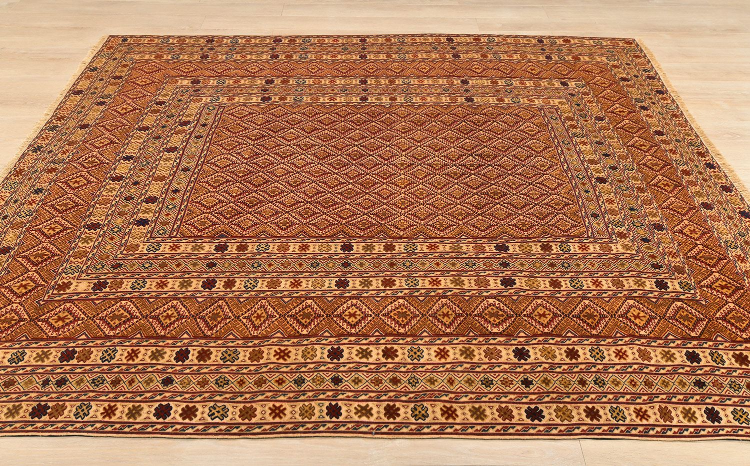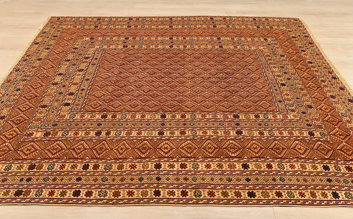 Ковер с комбинированным ворсом "Сюзани". Сложная техника ручного ковроткачества: сочетание ворсовых и безворсовых элементов в орнаменте. Шерсть высшей категории.
