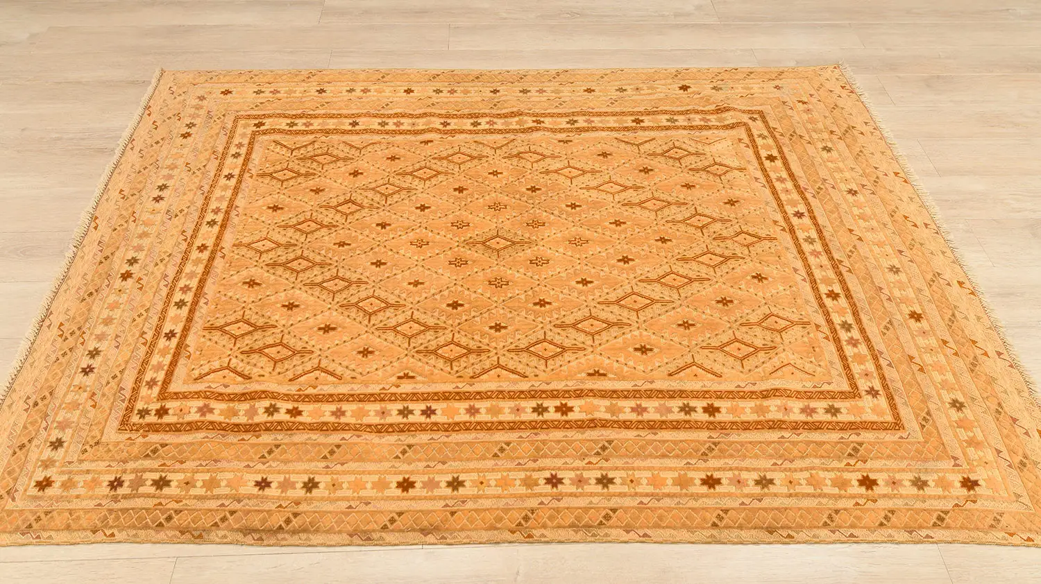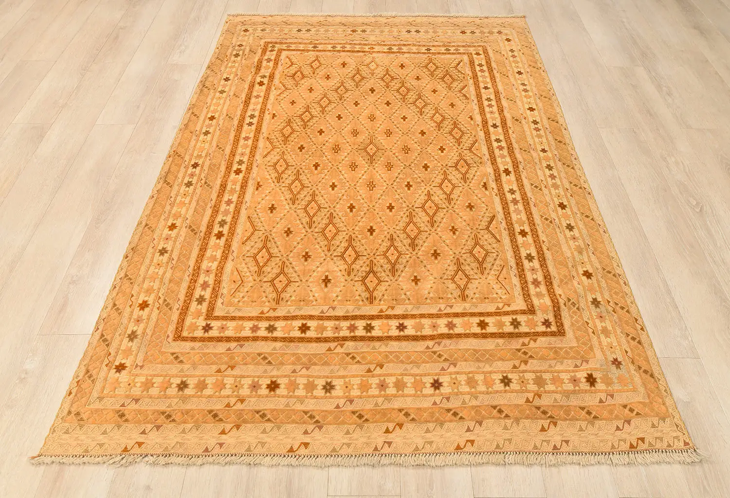 Килим-ковер с персидским орнаментом "Сюзани". Сложная комбинированная техника ручного ковроткачества: сочетание ворсовых и безворсовых элементов в орнаменте. Шерсть высшей категории. Высокая плотность узлов.