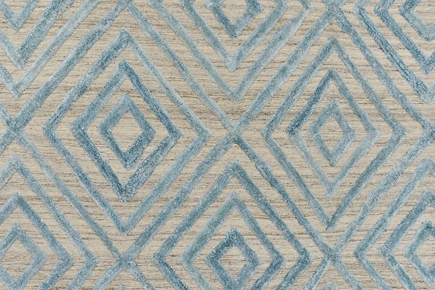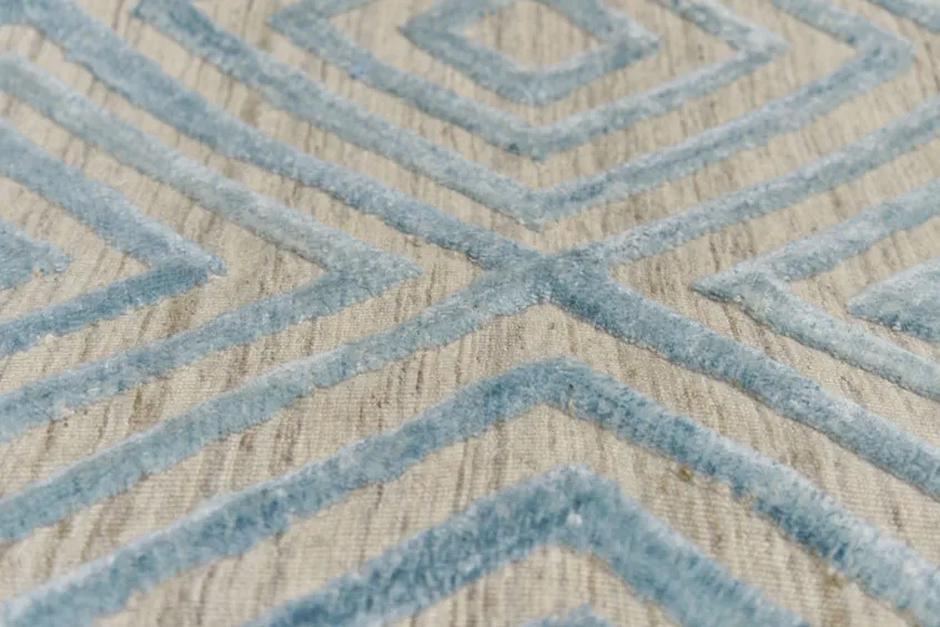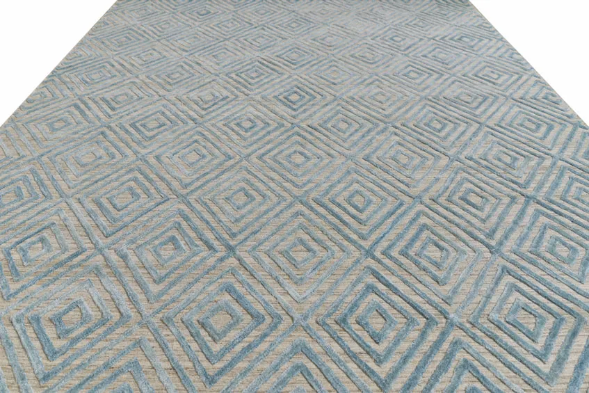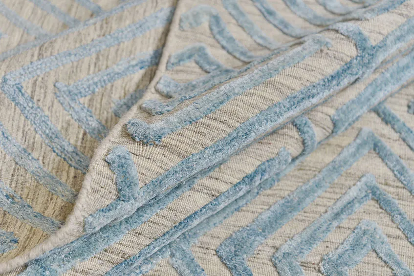Современный безворсовый ковер из шерсти с ворсовыми элементами из бамбукового шелка.