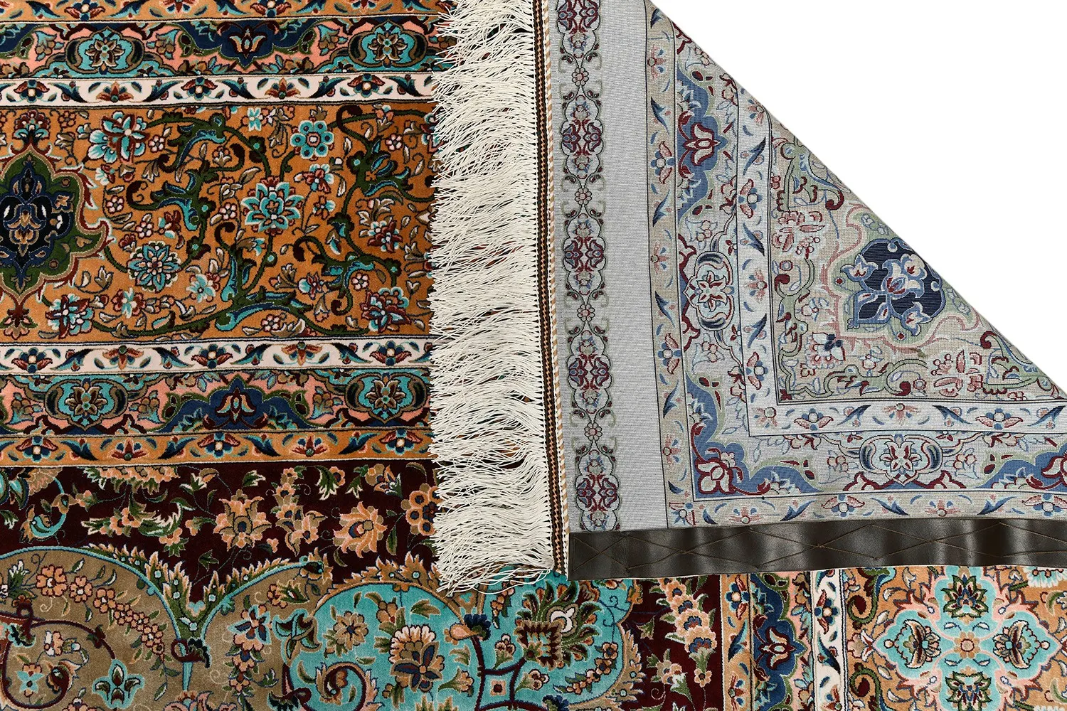 Ковёр изготовлен на машинном станке с ручной отделкой бахромы и ручной окантовкой.