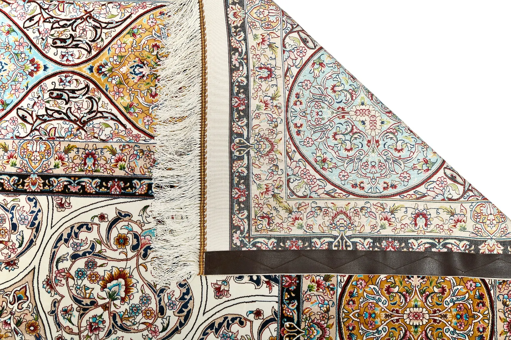 Машинная работа + ручная работа Ковёр изготовлен на машинном станке с ручной отделкой бахромы и ручной окантовкой.