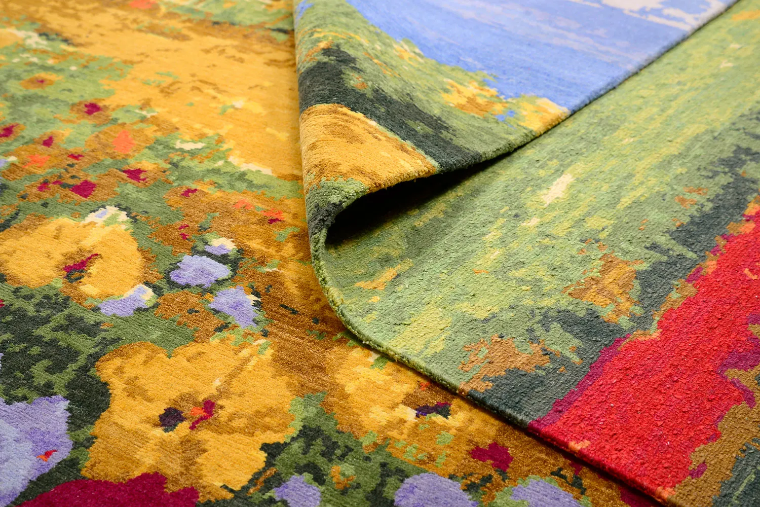Этот уникальный ковер от всемирно известного дизайнера Эрбиля Тезкана (основателя компании «Wool & Silk») соткан по самой трудоемкой и древней технике узелкового плетения в высокогорьях Гималаев из натуральных шелка и шерсти наивысшего качества. Дизайнерский ковер «Nature» («Природа») напоминает картину великого импрессиониста Клода Моне, стремящегося запечатлеть красоту и многообразие мира, переходные состояния природы. Ковер «Nature», передает ощущение тепла и комфорта летнего пейзажа через невероятную игру света и ярких цветов.