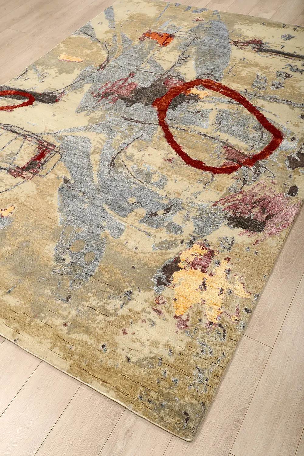 Индийский Abstraction ковер №3870 242x174cm из шелка и шерсти -50%