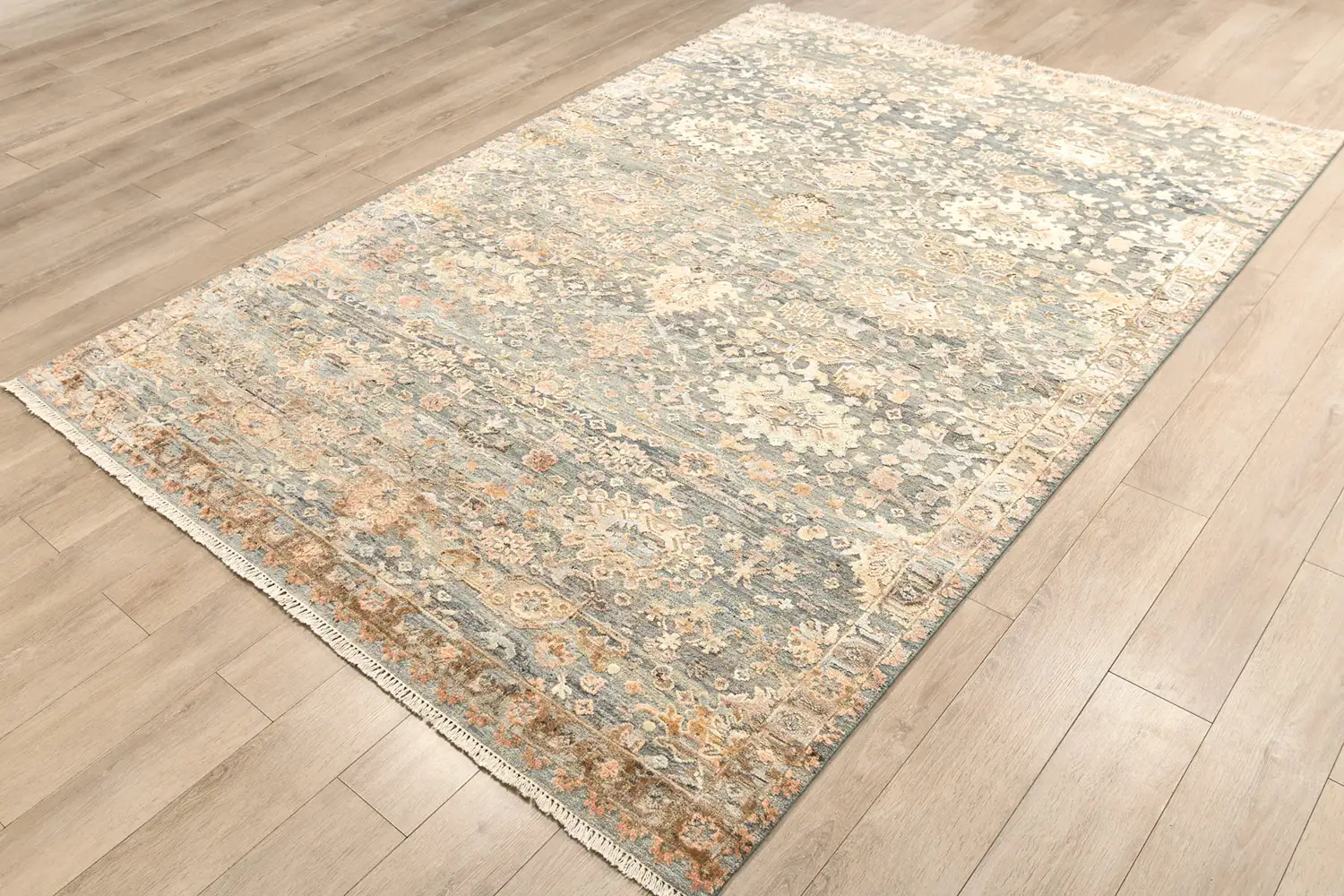 Современный Индийский ковер Ikat №2136 271x180cm из шерсти и шелка в стиле неоклассика -50%