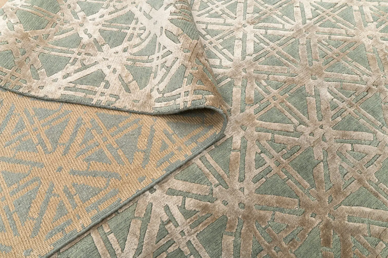 Безворсовый Индийский ковер Vilen №2936 264x180cm из шерсти и бамб. шелка -50%