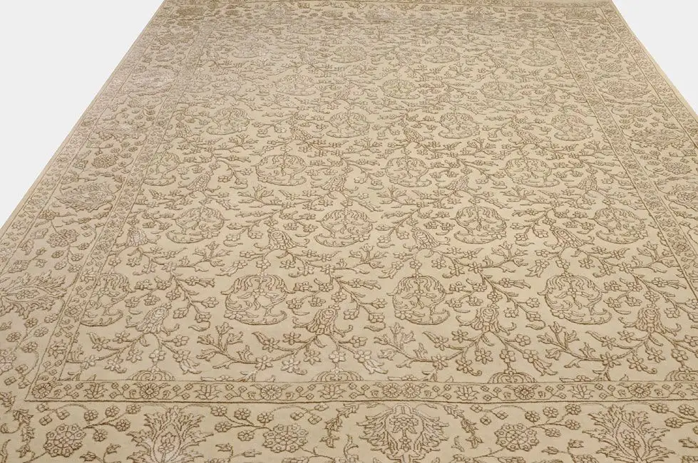 Современный Индийский ковер Baroque Frame №3416 275x185cm из шерсти и шелка в стиле неоклассика -50%