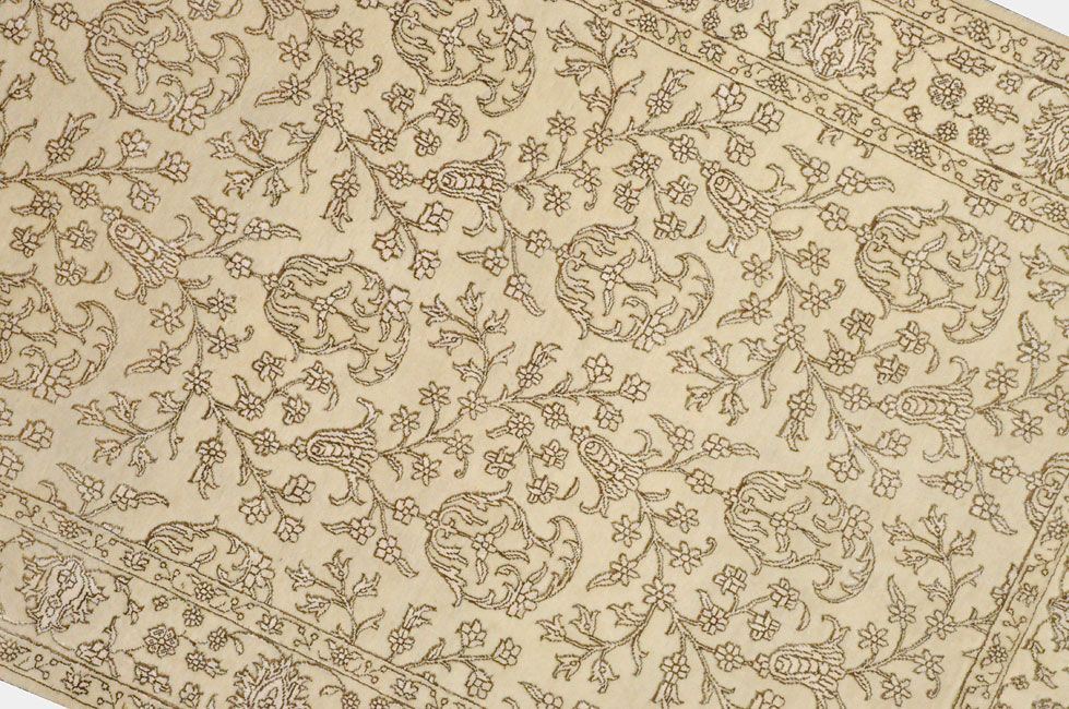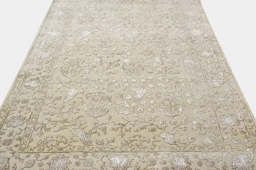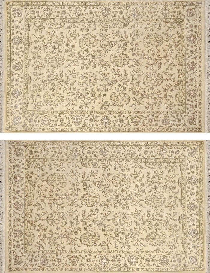 Весь орнамент выполнен из шелка, а фоновая часть из шерсти высшей категории. Высокая плотность узлов.