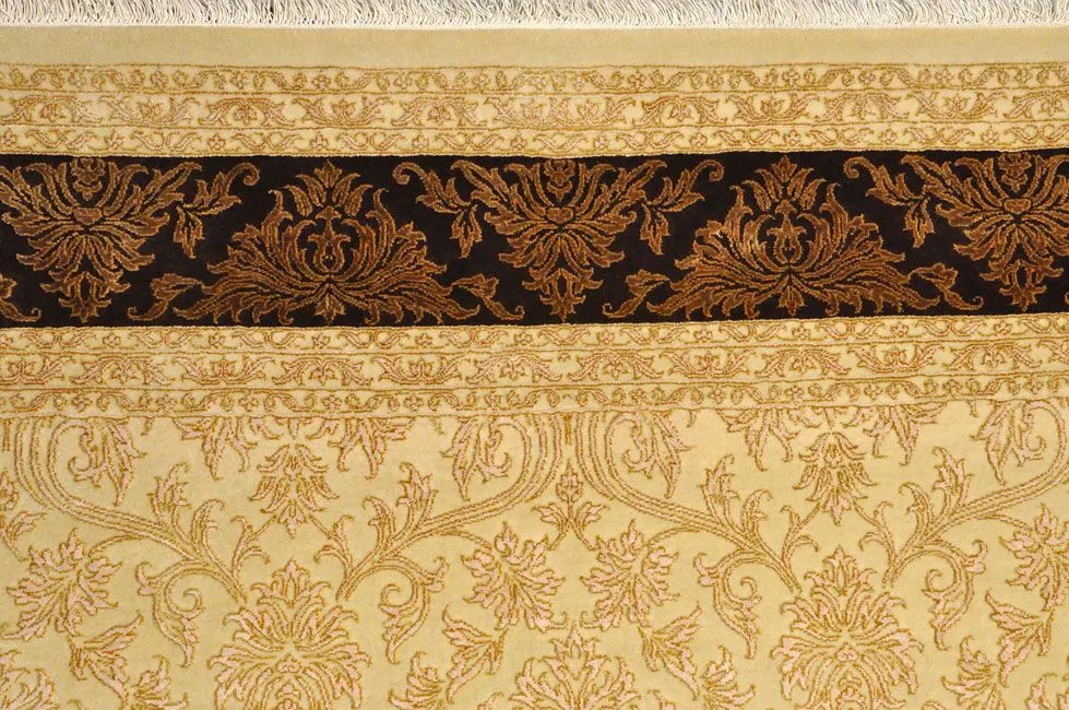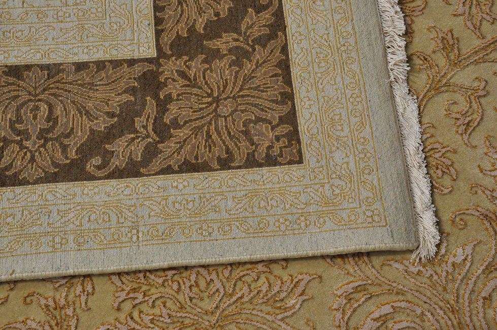 Соткан в Варанаси. Весь орнамент выполнен из шелка, а фоновая часть из шерсти высшей категории. Высокая плотность.