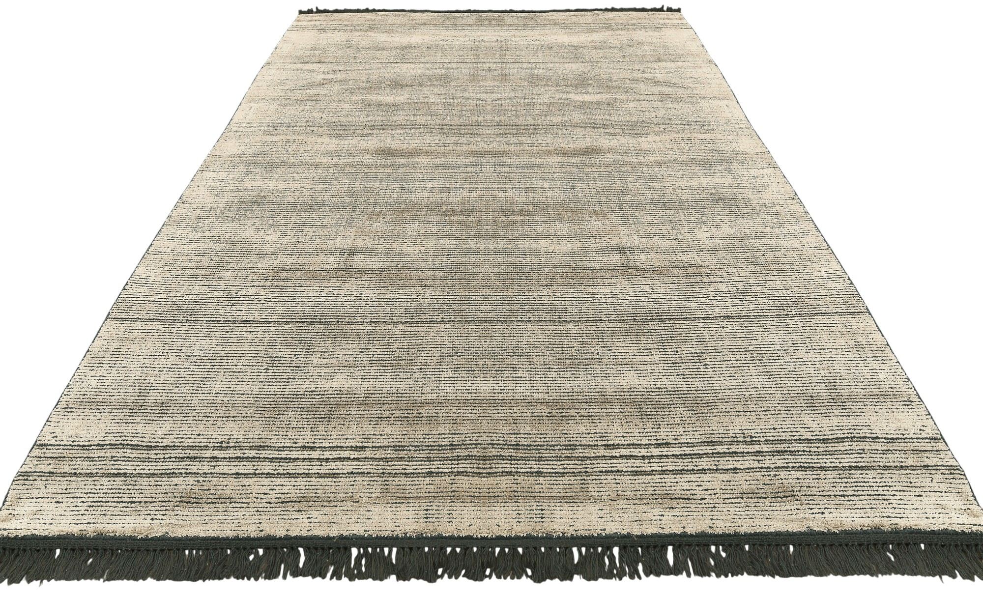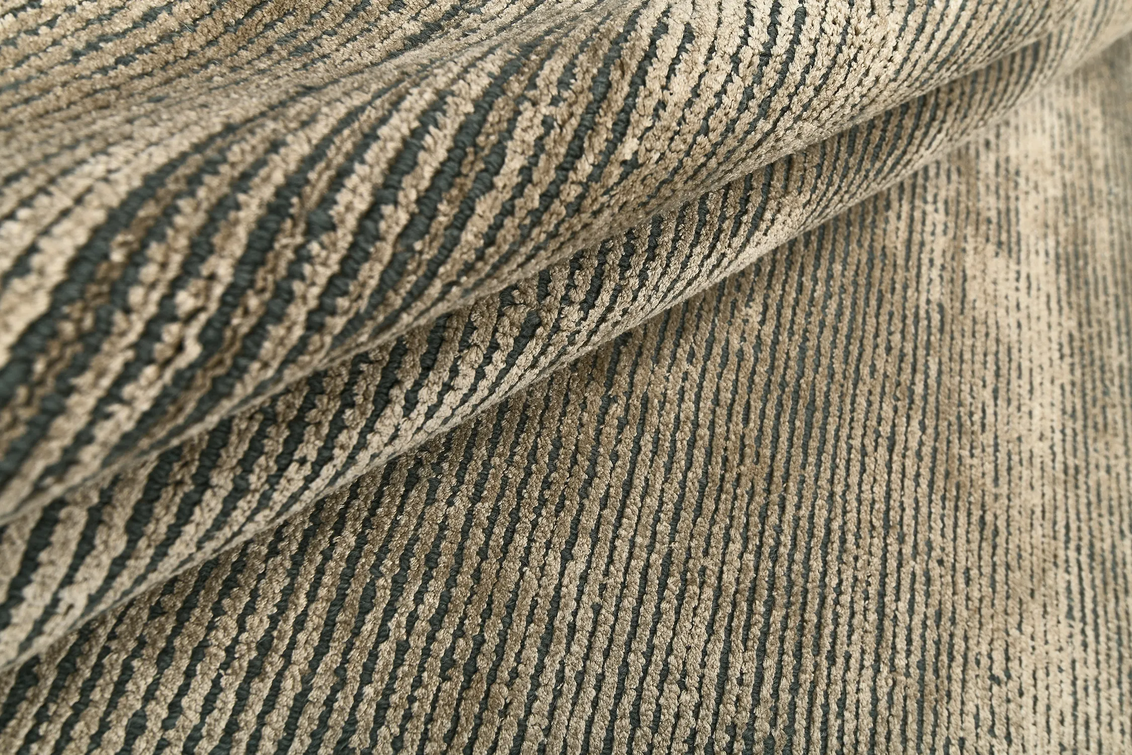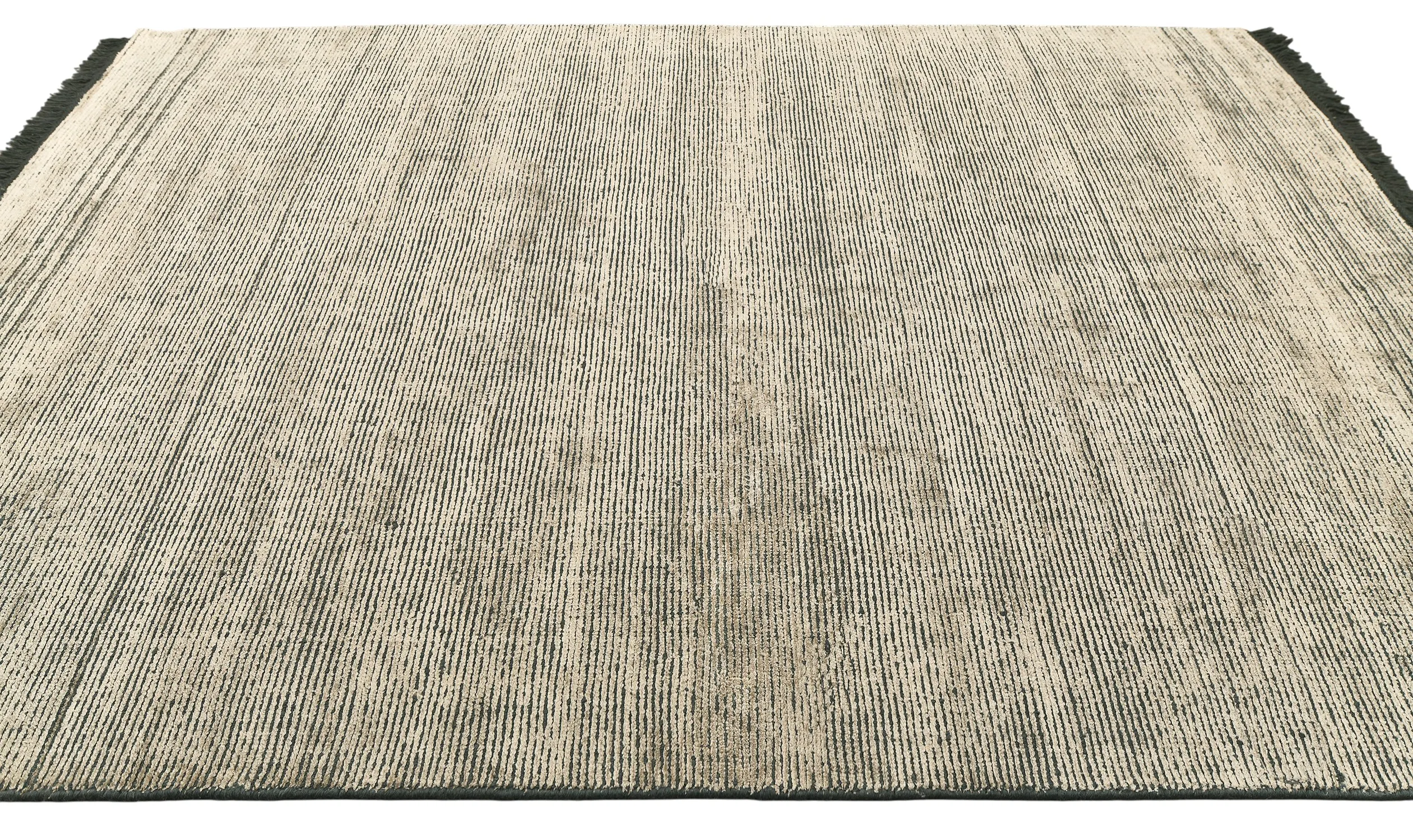 Ковёр выполнен вручную из натуральной шерсти и бамбукового шёлка. Сочетание материалов придаёт поверхности глубину, мягкое сияние и тактильную выразительность.