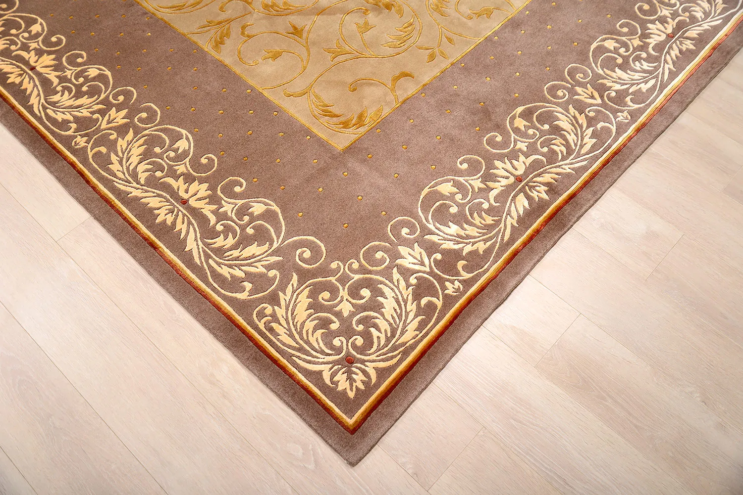 Фоновая часть этого роскошного ковра соткана из нежнейшей шерсти яка, а весь орнамент выполнен из натурального шелка. На основе классического орнамента создано нечто нетривиальное и эффектное. Сегодня понятие роскошный предмет наполняется новым содержанием - это легкость, подлинный комфорт, высокое качество! Ковры из коллекции Gansu - для скрупулезных и требовательных.