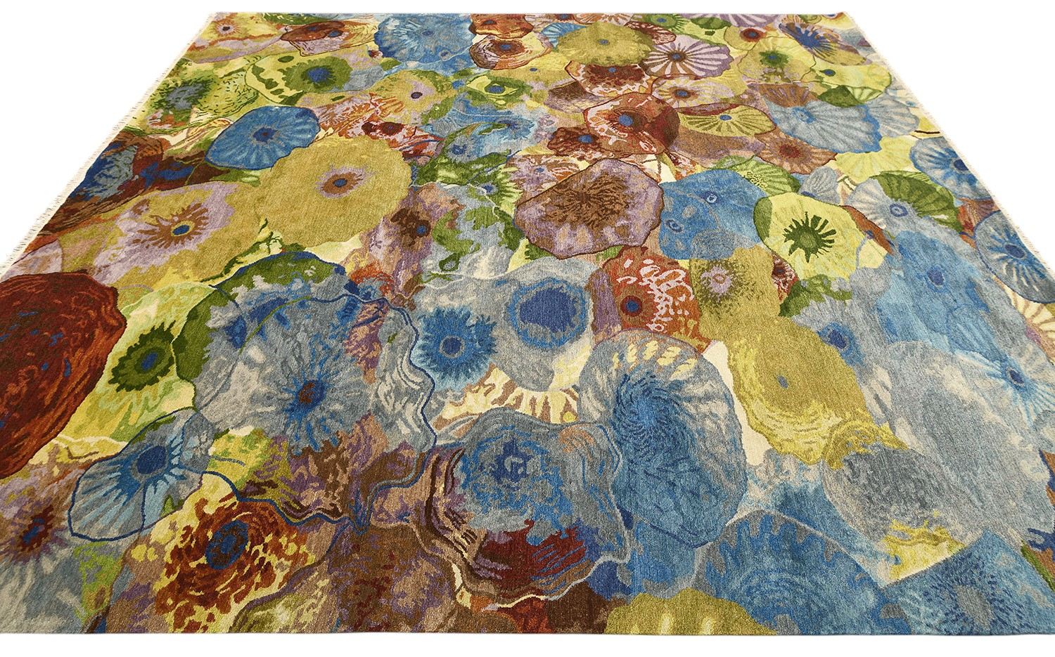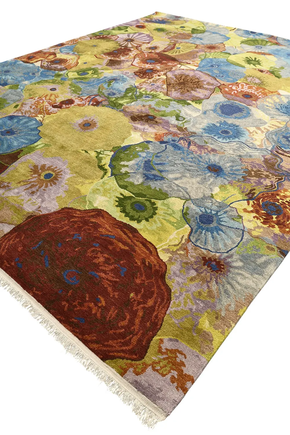 Ковер Glass Flowers создан одним из самых ярких на сегодняшний день и одним из самых заслуженных мировых дизайнеров современных ковров - Эрбилем Тезканом, основателем компании «Wool & Silk». Ковер ручной работы соткан из премиальной натуральной шерсти и натурального шелка.