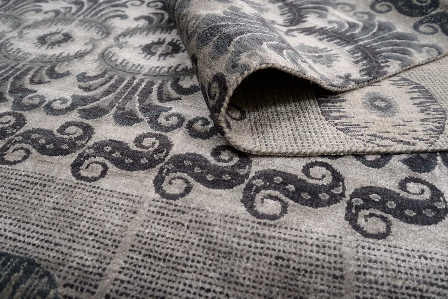 Современный Индийский ковер Baroque Frame №3416 275x185cm из шерсти и шелка в стиле неоклассика -50%
