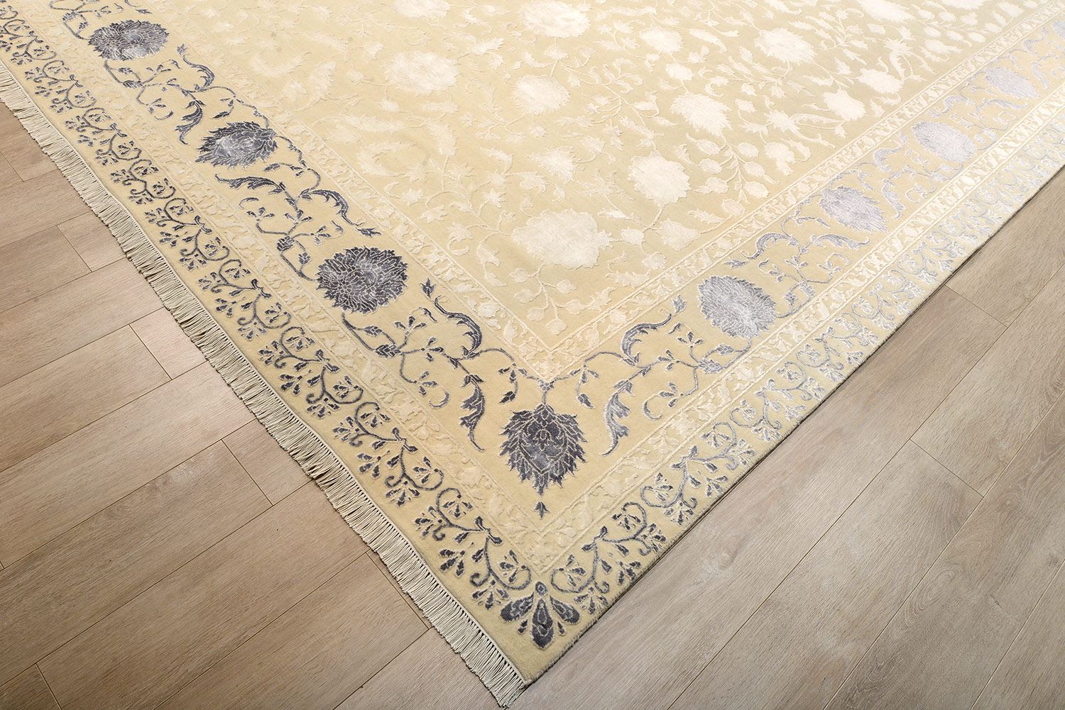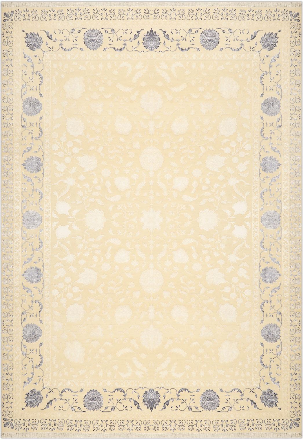 Этот ковер в стиле Неоклассика с роскошным мягким ворсом цвета яичного белка и маскарпоне станет хорошим фоном для "холодного" интерьера.