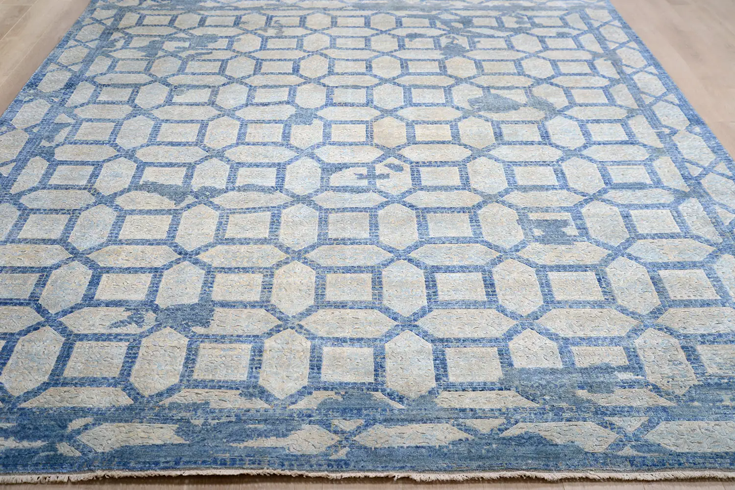 Безворсовый Индийский ковер Vilen №2897 297x241cm из шерсти и бамб. шелка -50%