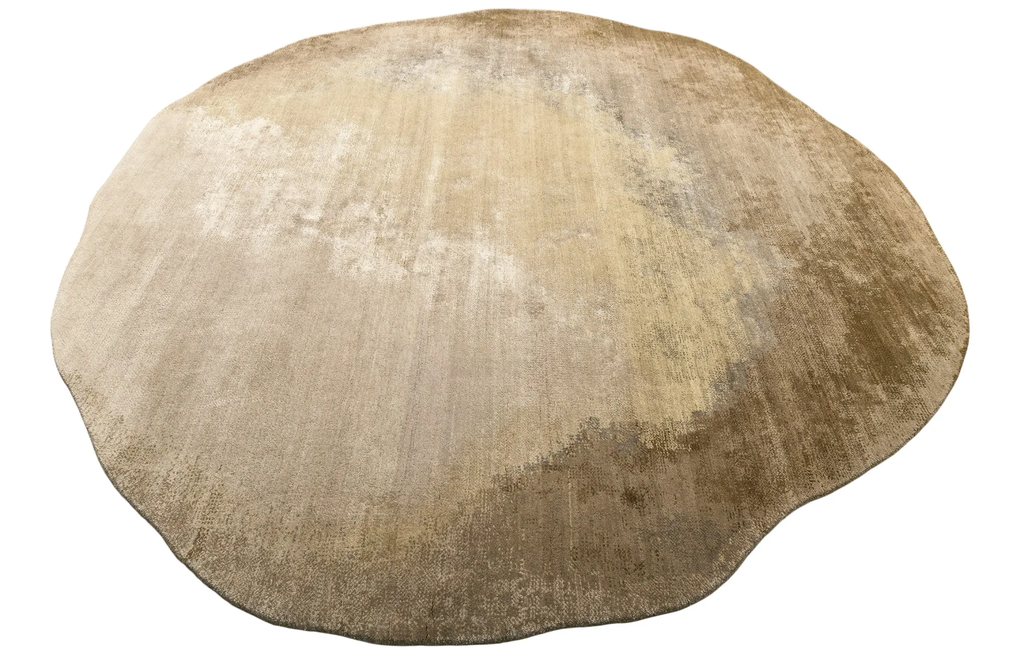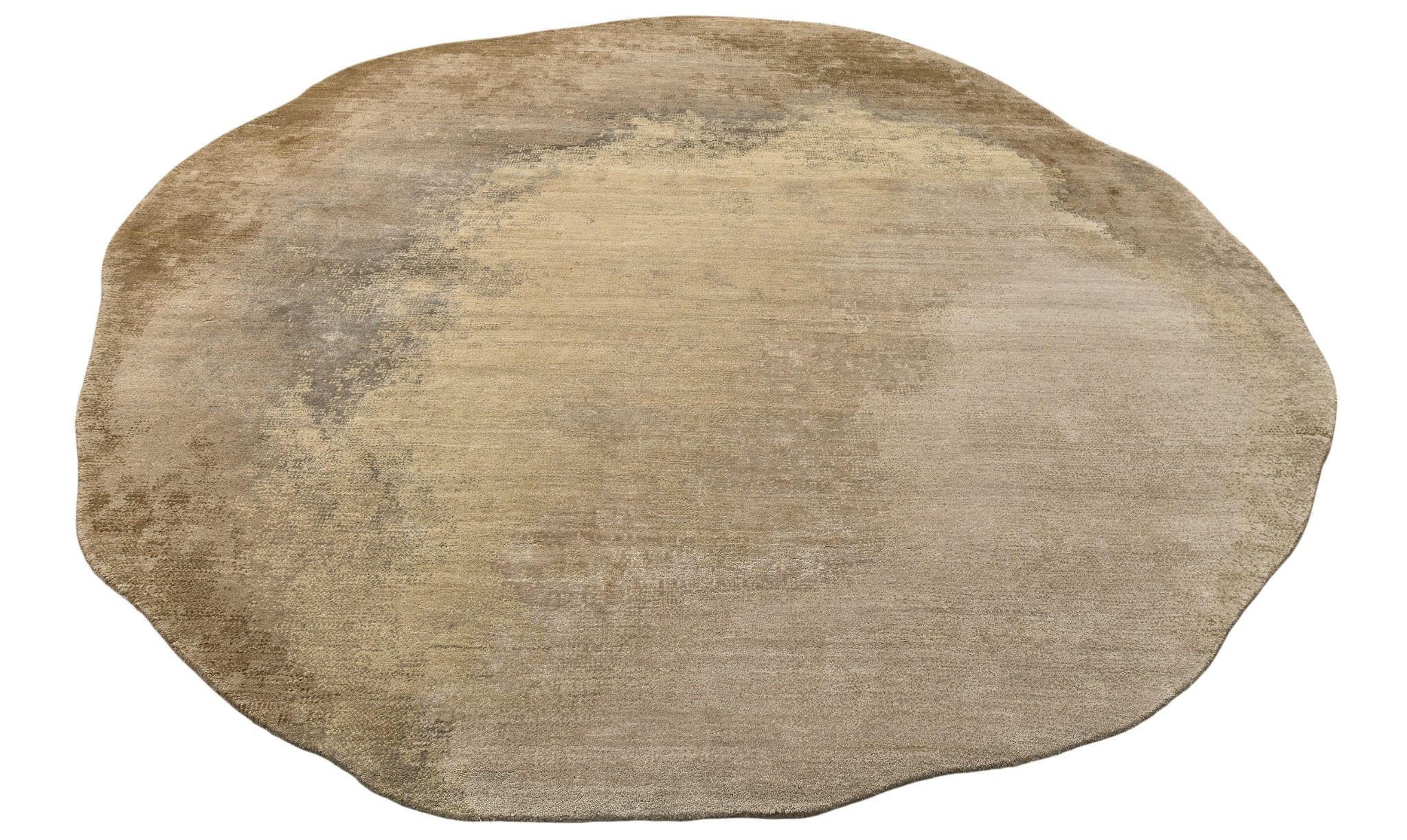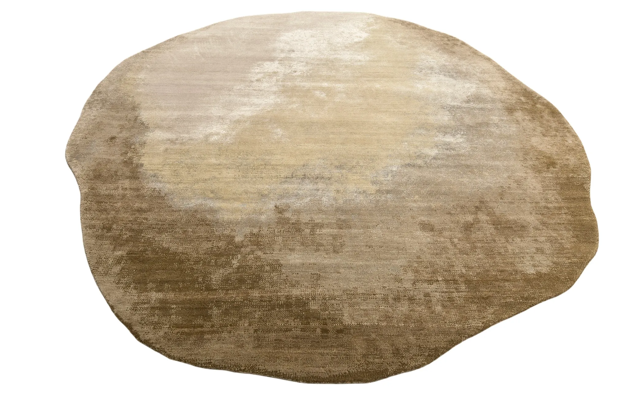 Этот ковер очаровывает своей мягкой органичностью, словно создан прикосновением ветра к песчаным дюнам. Его естественная неправильная форма напоминает гальку, отшлифованную морскими волнами, или облако, застывшее в момент своего самого прекрасного очертания. Такой силуэт привносит в интерьер особую гармонию и умиротворение, нарушая строгую геометрию пространства природной мягкостью.