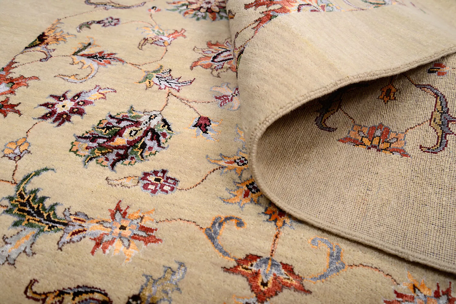 Шелк – натуральное волокно, придающее блеск орнаменту и прочность текстуре ковра . -