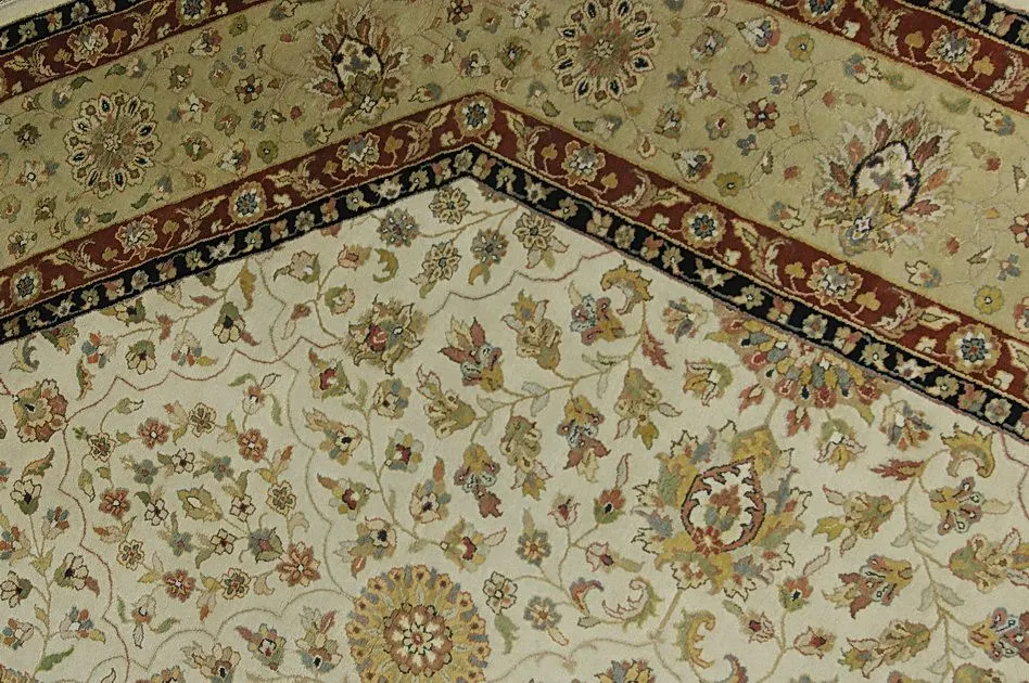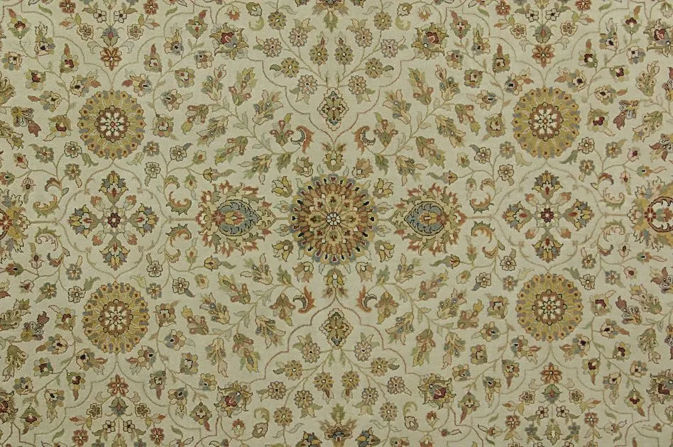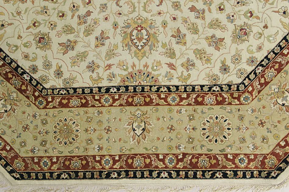 Весь орнамент выполнен из шелка, а фоновая часть из шерсти высшей категории. Высокая плотность.