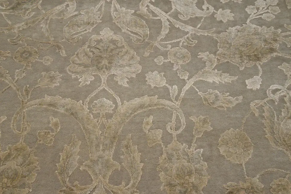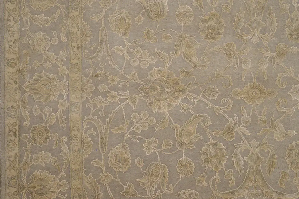 Современное исполнение классического орнамента "Раджастан". Выполнен в светлых пастельных тонах. Натуральный шелк и шерсть.