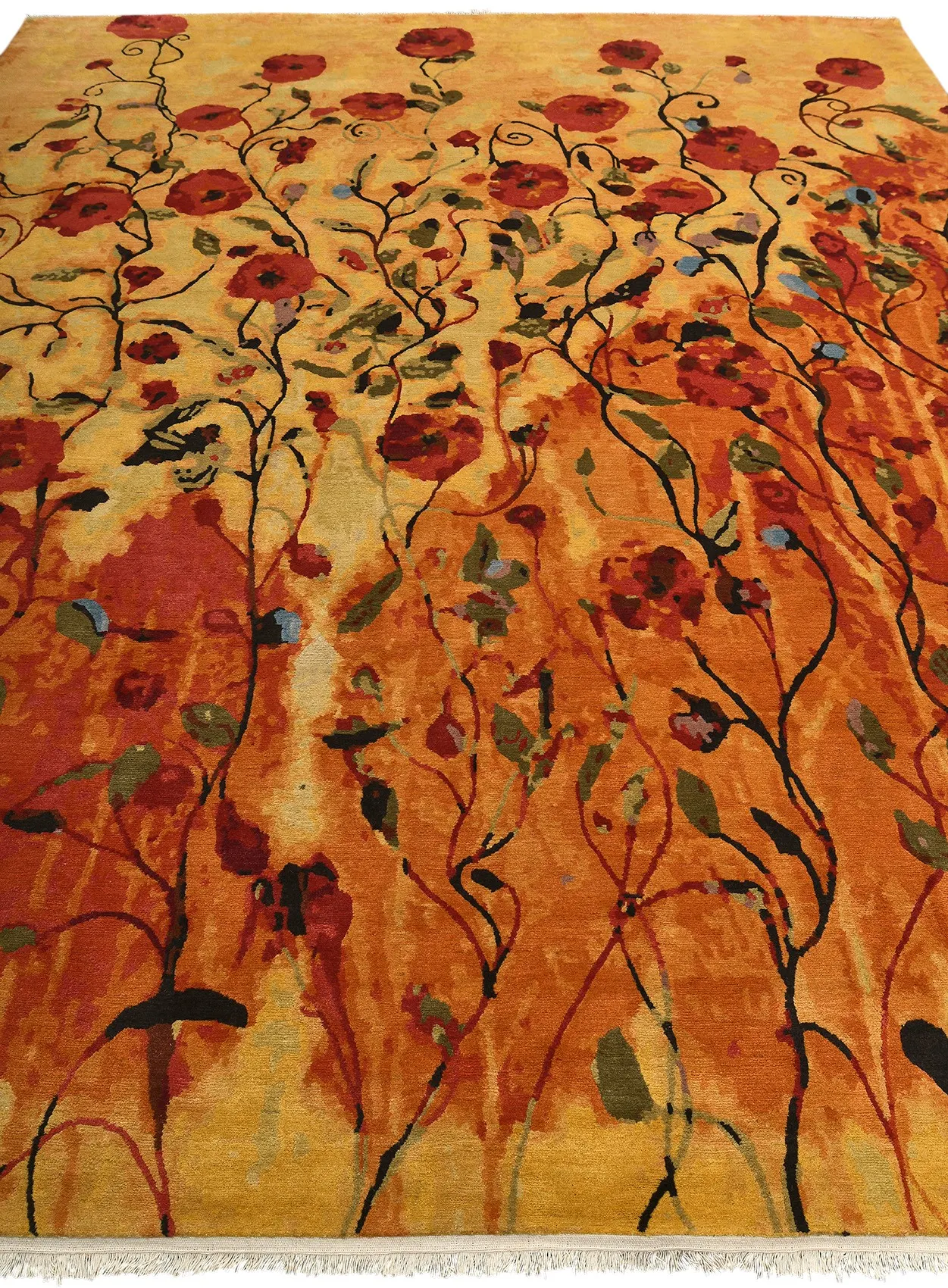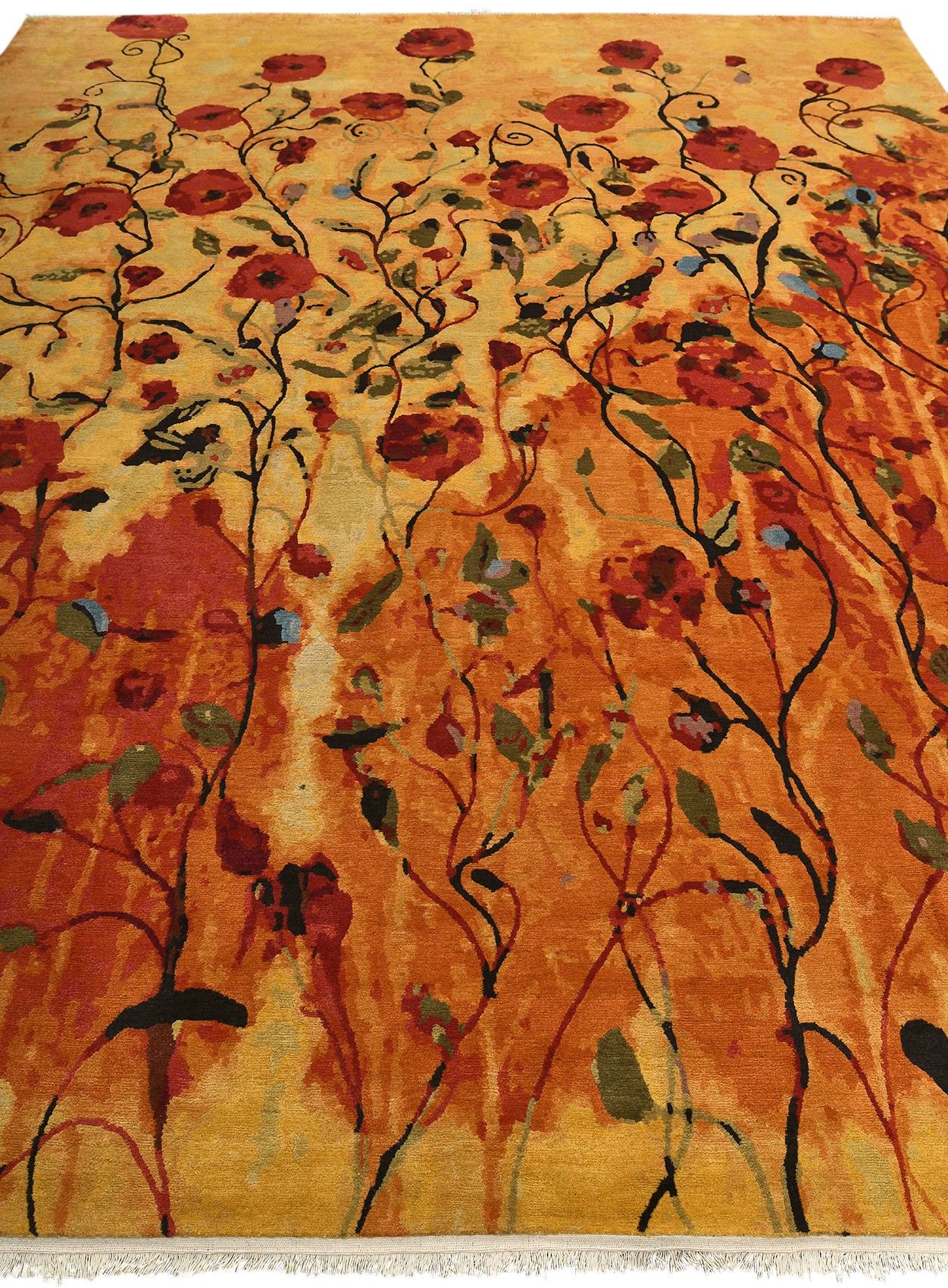 Уникальный ковер от всемирно известного дизайнера Эрбиля Тезкана (основателя компании «Wool & Silk») соткан по самой трудоемкой и древней технике узелкового плетения в высокогорьях Гималаев из натуральных шелка и шерсти наивысшего качества. Дизайнерский ковер Rhapsody in Bloom («Рапсодия в цвету») напоминает картины великих импрессионистов начала XX века, передает ощущение тепла и комфорта летнего пейзажа через невероятную игру света и ярких цветов.