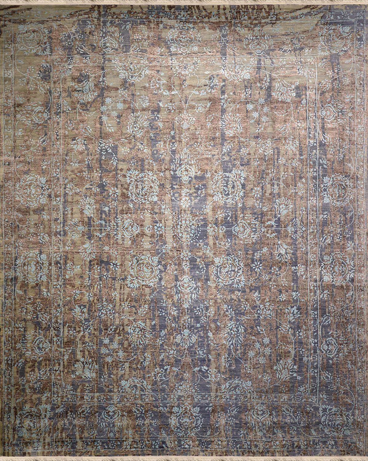 Ковер выполнен в стильной цветовой гамме с эффектом стертого рисунка и неоднородного окраса. Соткан из натурального шелка и шерсти с максимальной плотностью для данного типа ковров.