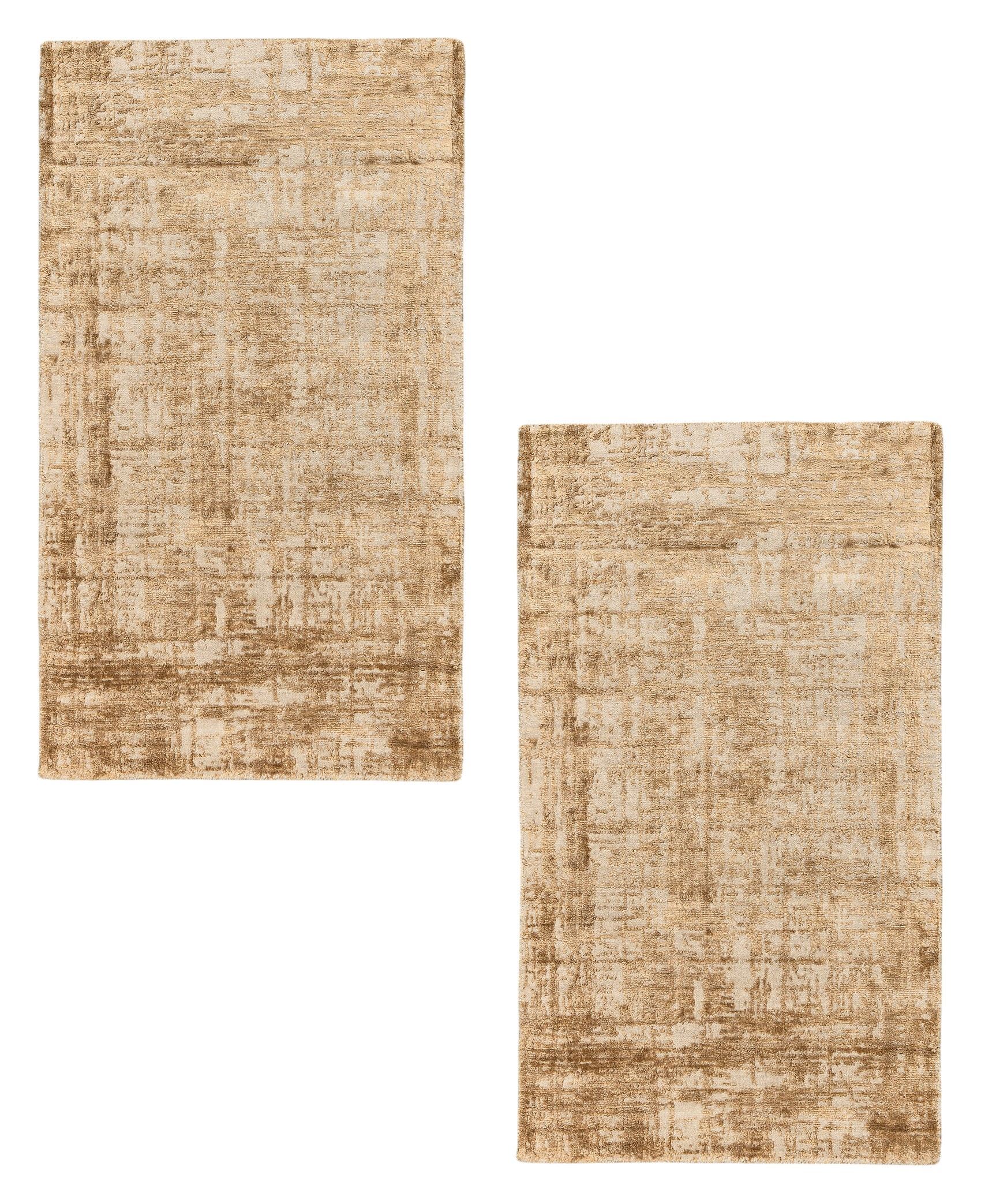 Парные прикроватные ковры Tasvini с мягким ворсом и тёплым охристо-золотистым оттенком, создающие комфортную и сбалансированную атмосферу в спальной зоне. Ковры ручной работы, изготовлены методом hand loom.