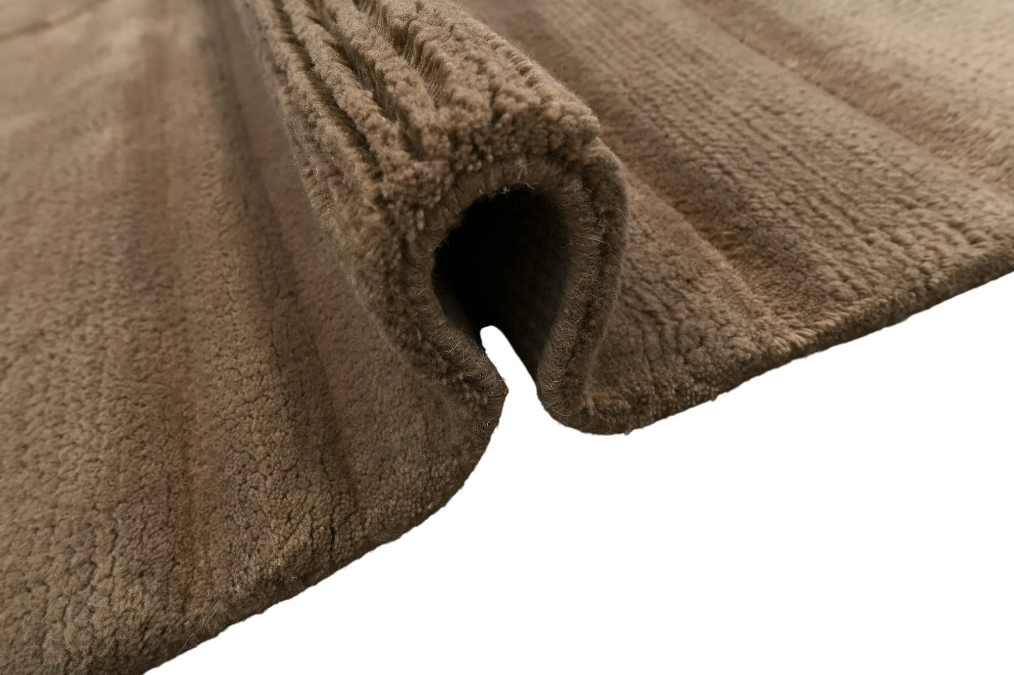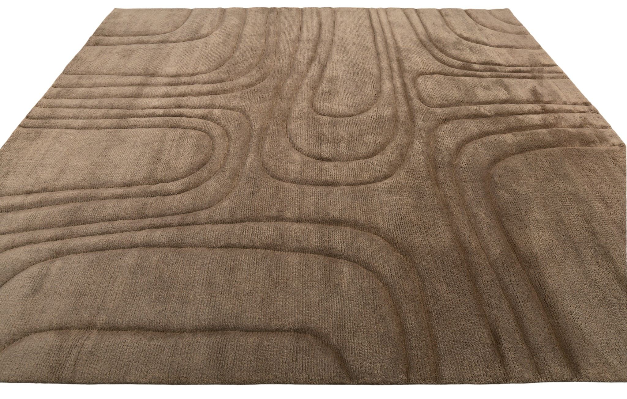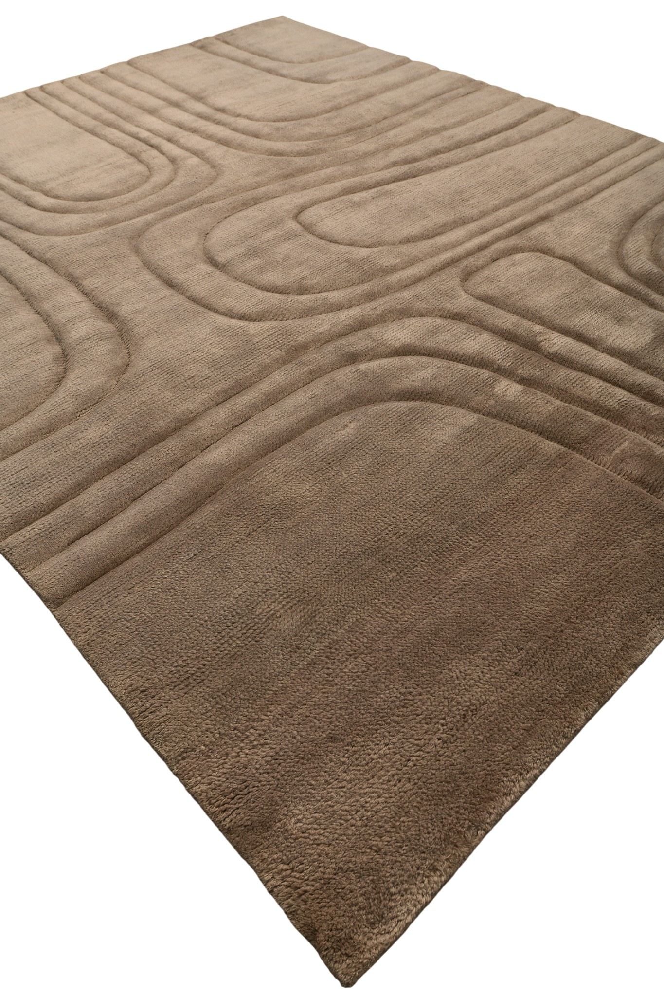 Однотонный ковер Aura с длинным, "уютным" ворсом соткан вручную в Варанаси (Индия). Рисунок ковра - результат выстрижки однотонного длинного ворса. Использована натуральная мягкая новозеландская шерсть премиального качества.