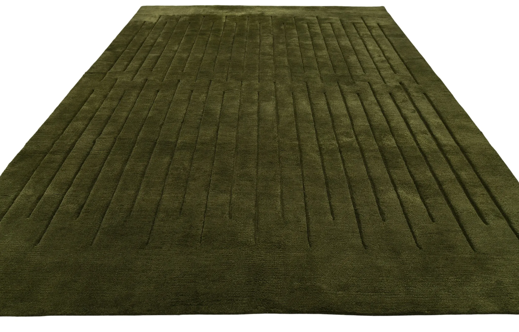Однотонный ковер Aura с длинным, "уютным" ворсом соткан вручную в Варанаси (Индия). Рисунок ковра - результат выстрижки однотонного длинного ворса. Использована натуральная мягкая новозеландская шерсть премиального качества.