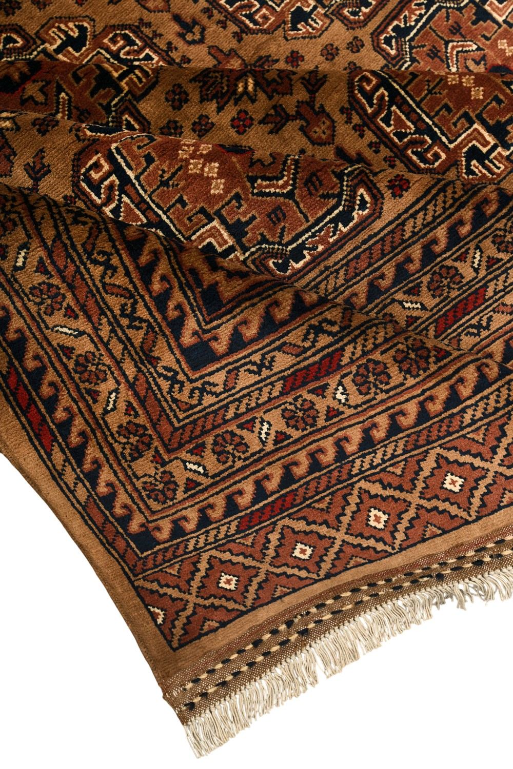 Этот афганский ковер Beleji ручной работы выполнен в теплой коричнево-терракотовой гамме с акцентами черного и бежевого, создающими выразительный геометрический орнамент. Богатая детализация и ритмичный узор придают ковру особую гармонию и глубину. Ковер соткан из премиальной шерсти высшей категории в высокой узелковой плотности, что гарантирует долговечность и утонченное звучание восточной традиции в интерьере.