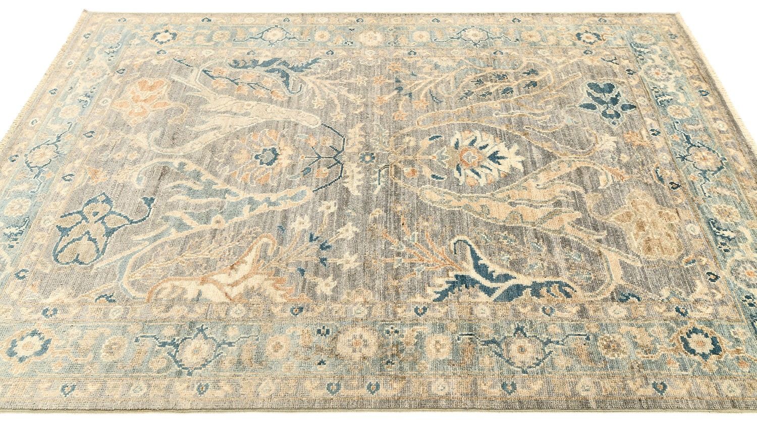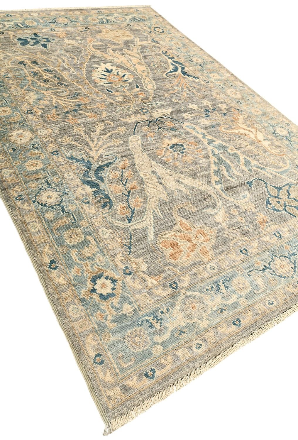 Шерстяной ковер Bijar ручной работы из Пакистана выполнен в нежных серо-бежевых и голубых тонах, создающих гармоничное и спокойное настроение. Традиционный восточный орнамент придает ковру изысканность, делая его прекрасным выбором для гостиной, спальни или кабинета.