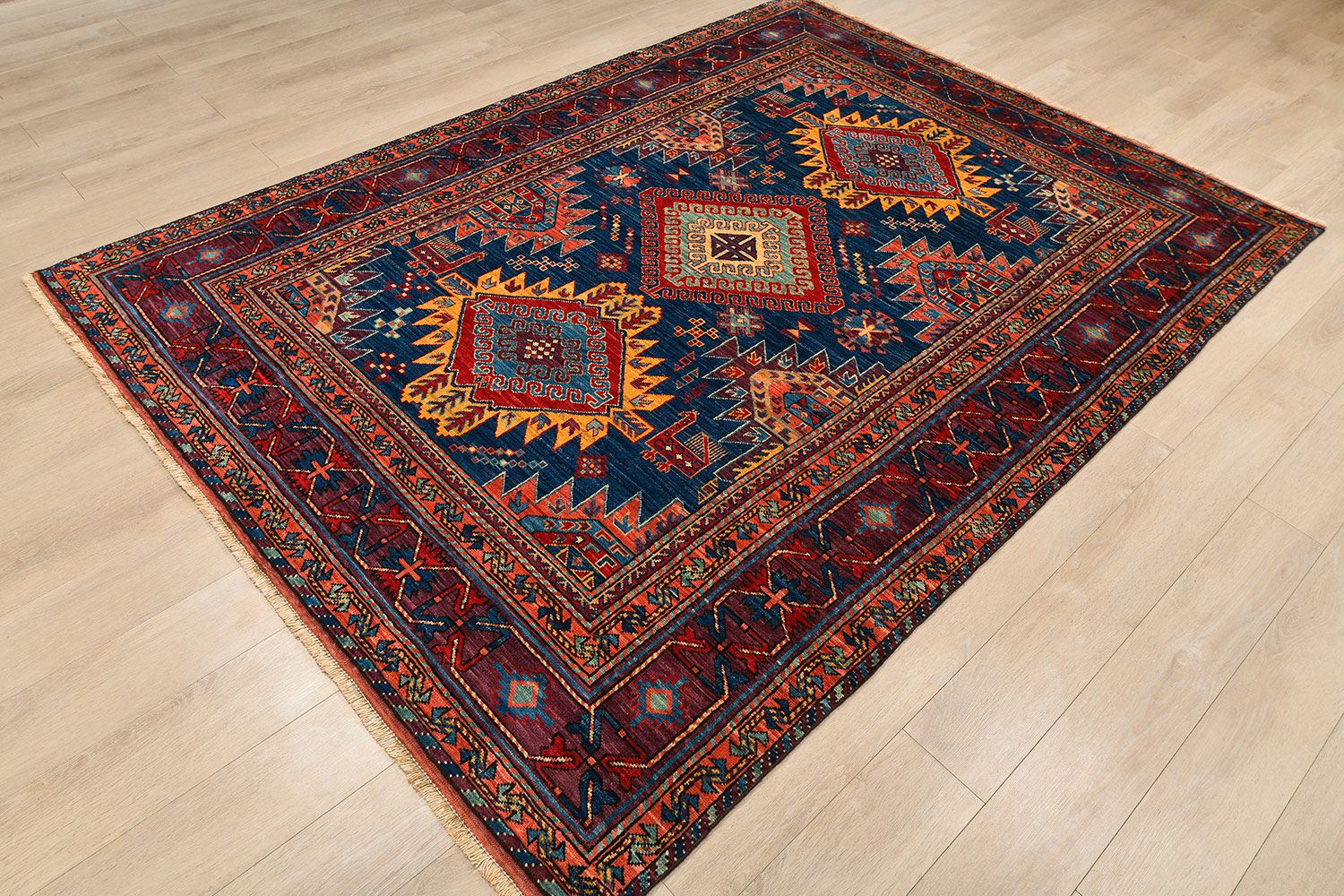 Соткан в регионе Пешавар, который является одним из мировых центров ковроткацкого искусства.