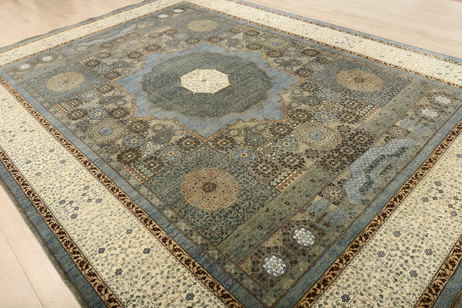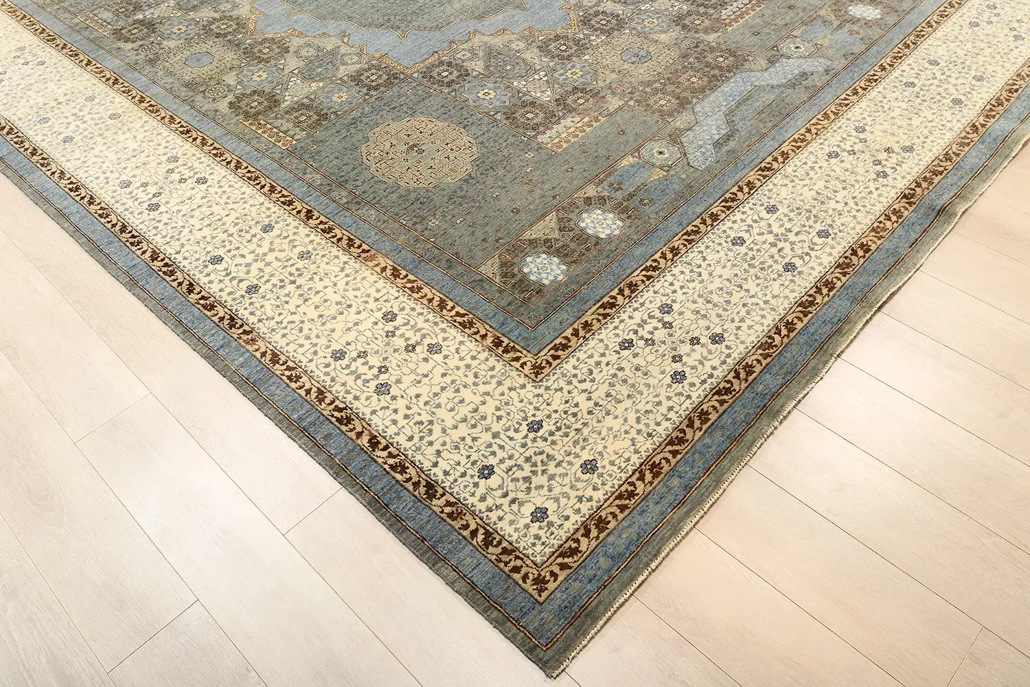 Современный Индийский ковер Arabesque №1183 366x273cm из шерсти в стиле неоклассика -50%