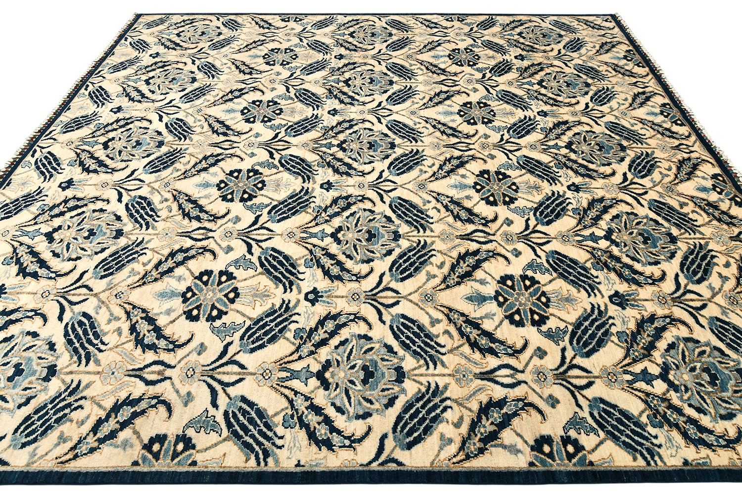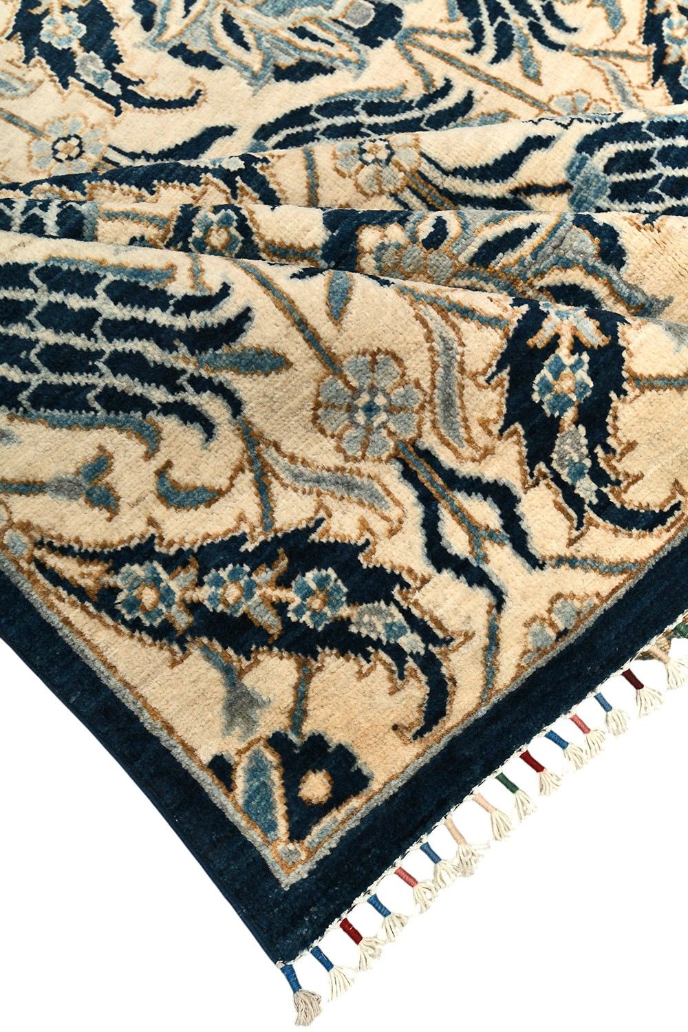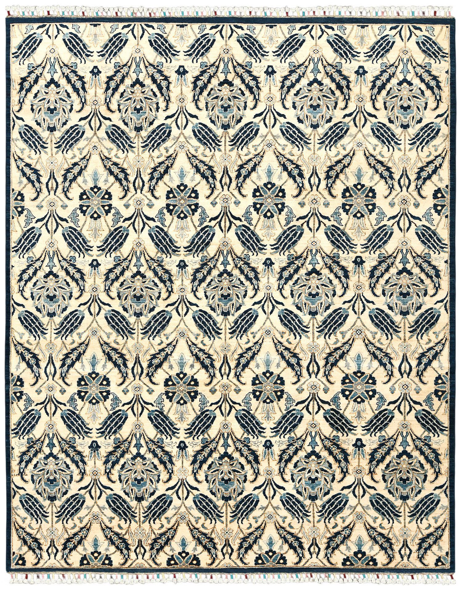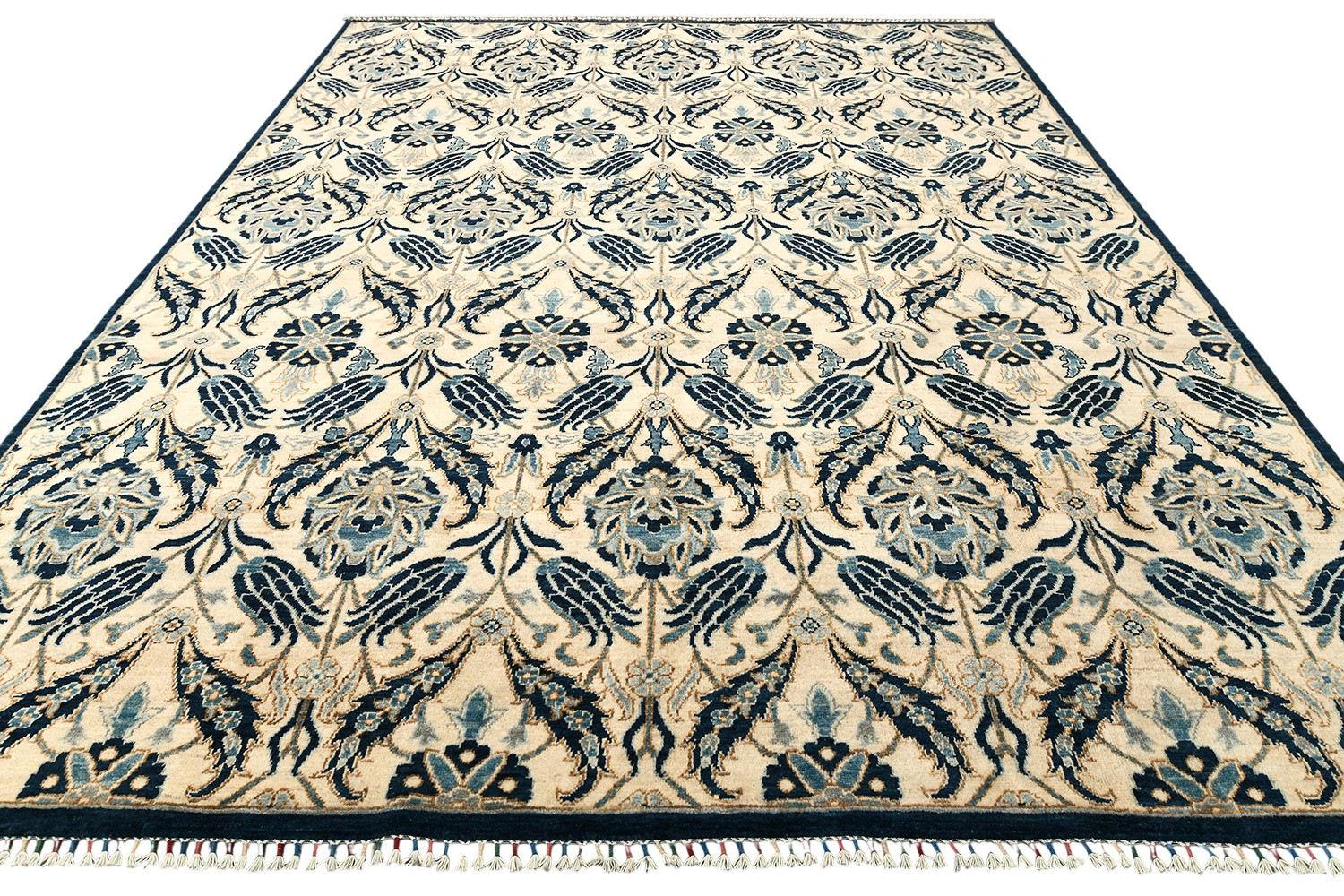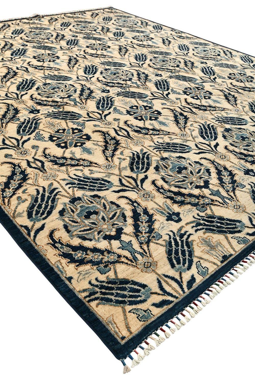 Этот изысканный ковер Morris ручной работы выполнен в утонченной бежево-синей гамме с выразительным растительным узором, создающим атмосферу гармонии и благородства. Контраст темно-синих и мягких бежевых оттенков подчеркивает изящество орнамента и добавляет интерьеру глубину. Тканый по старинной технологии из шерстяной нити веретенной крутки с применением натуральных красителей, он сочетает красоту традиций и долговечность.