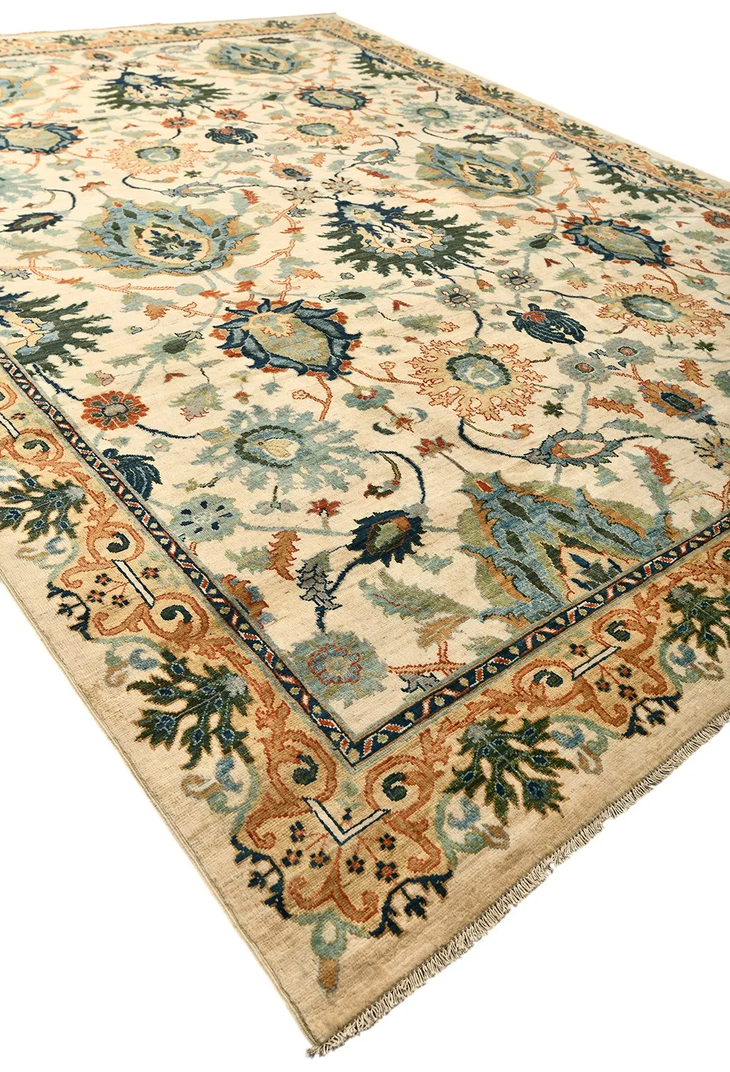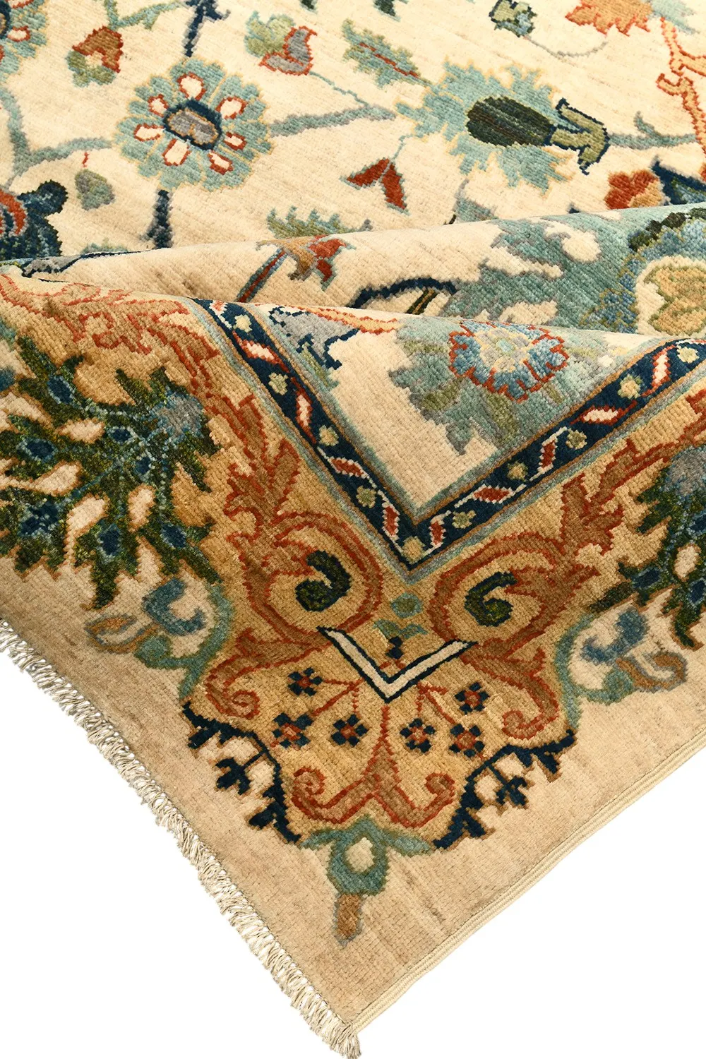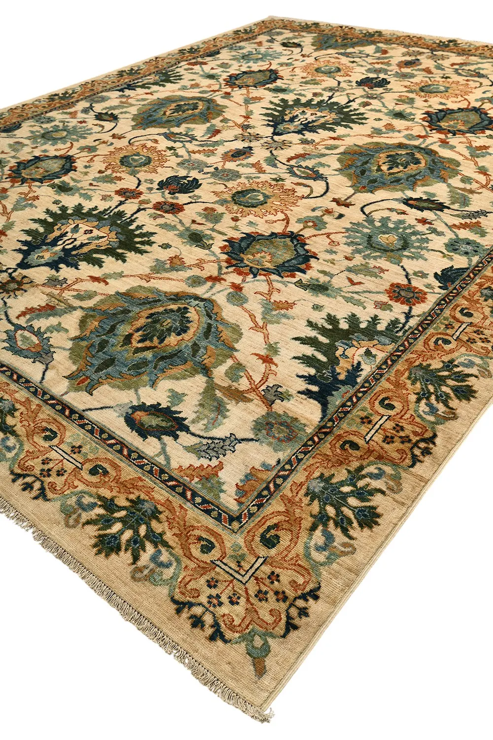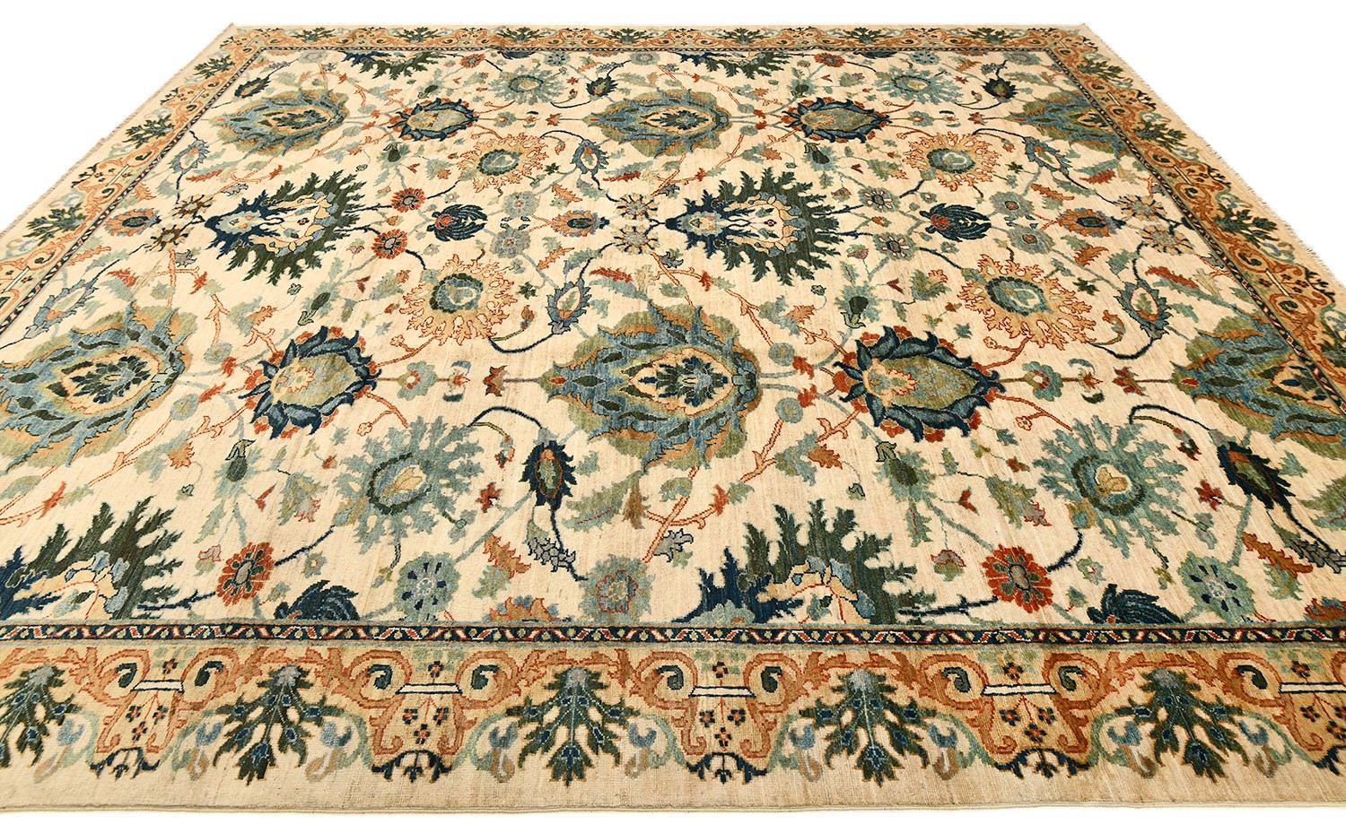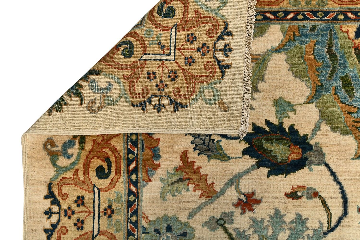 Ковер Saltani из Пакистана выполнен вручную из натуральной шерсти и украшен изысканным флоральным узором на светлом фоне. Его благородные оттенки и тонкая проработка деталей создают атмосферу уюта и гармонии, делая ковер выразительным акцентом в интерьере.