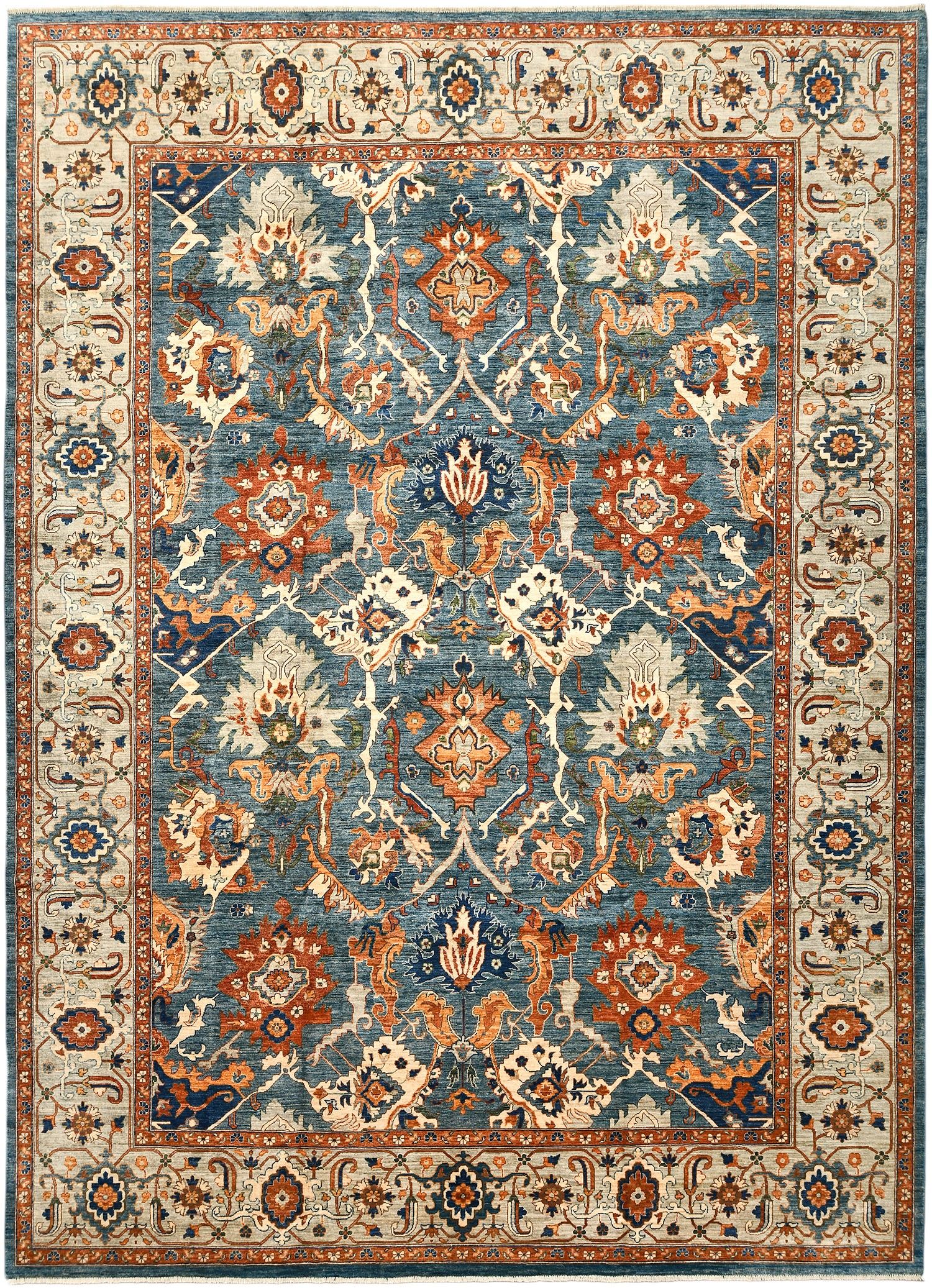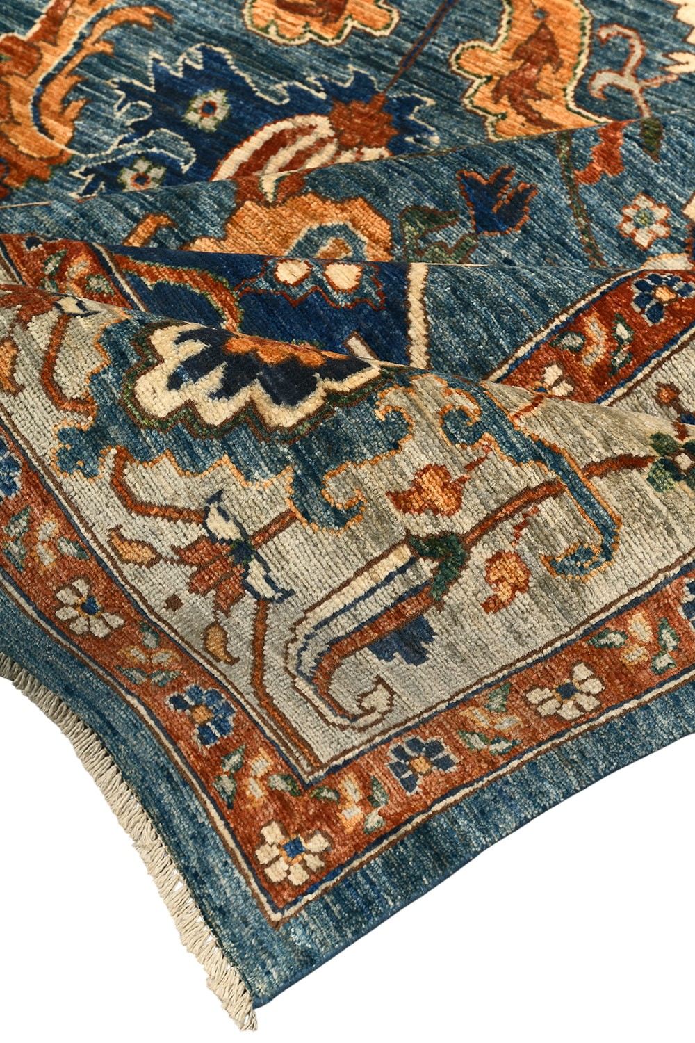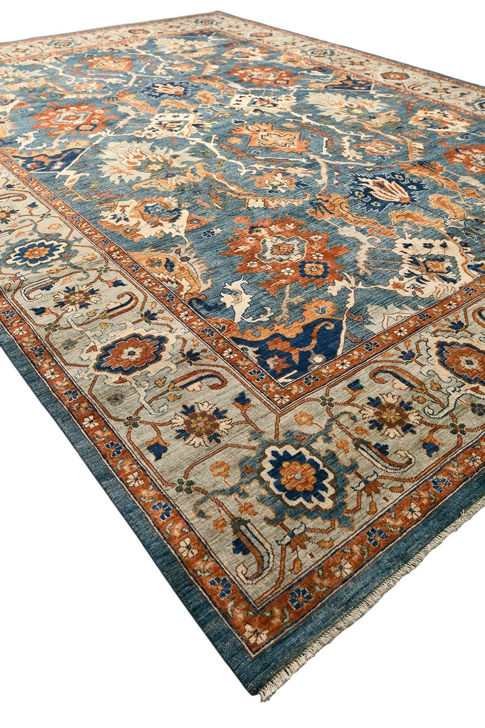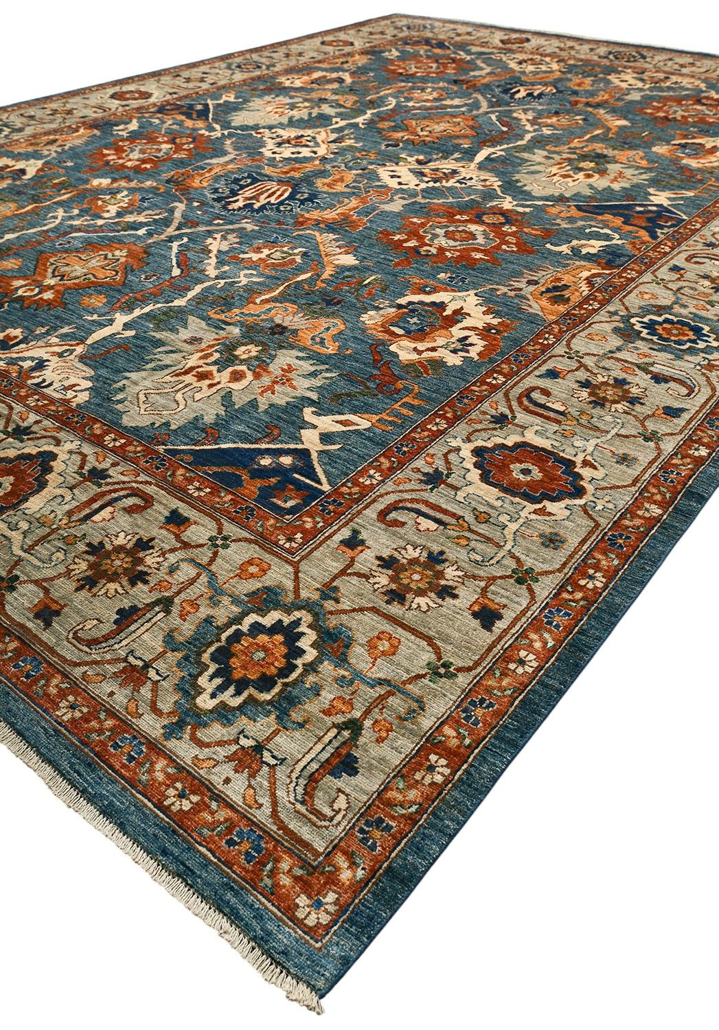 Ковер Saltani из Пакистана — это высококачественная ручная работа из натуральной шерсти, выполненная в благородной гамме синих и терракотовых оттенков. Богатый восточный орнамент и гармоничное сочетание цветов придают ковру роскошный и изысканный вид. Он прекрасно дополнит классический или современный интерьер, создавая атмосферу уюта и утонченного стиля.