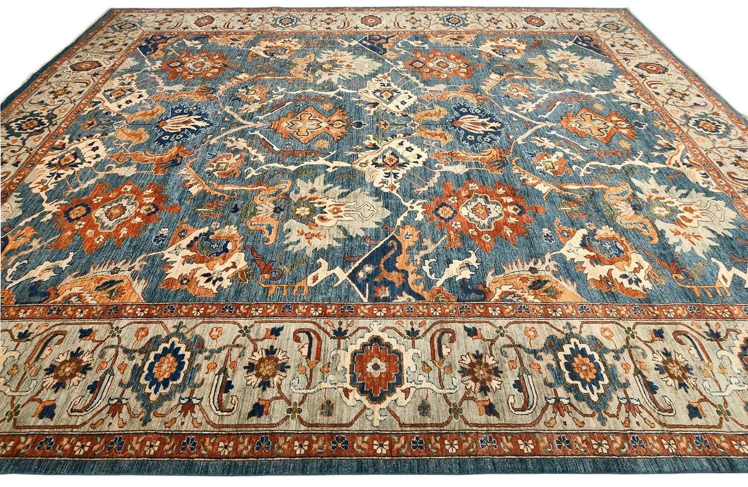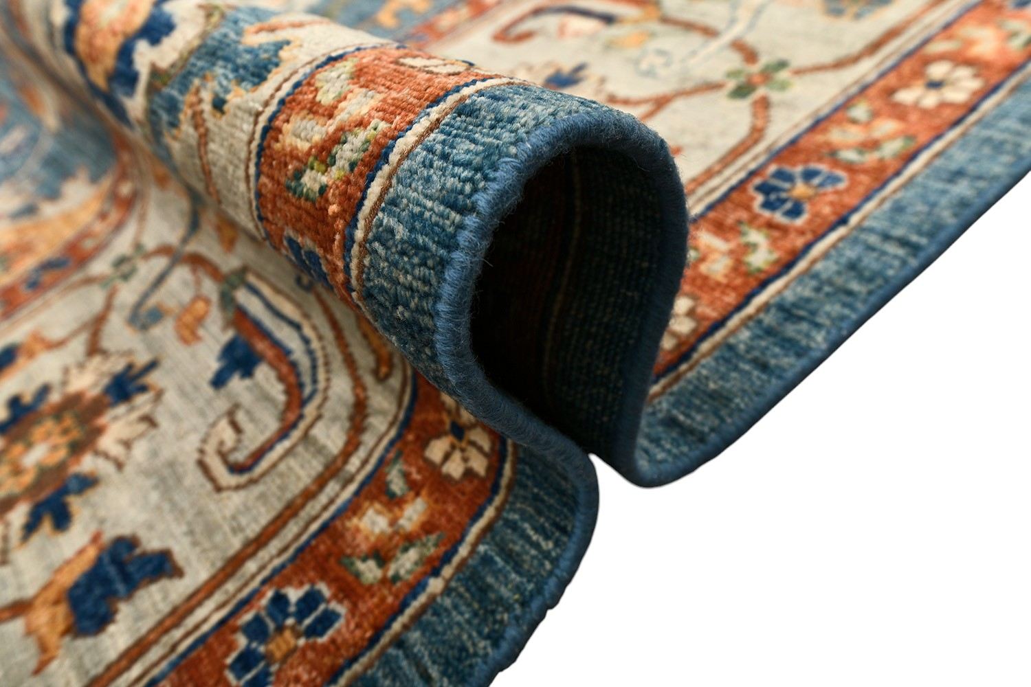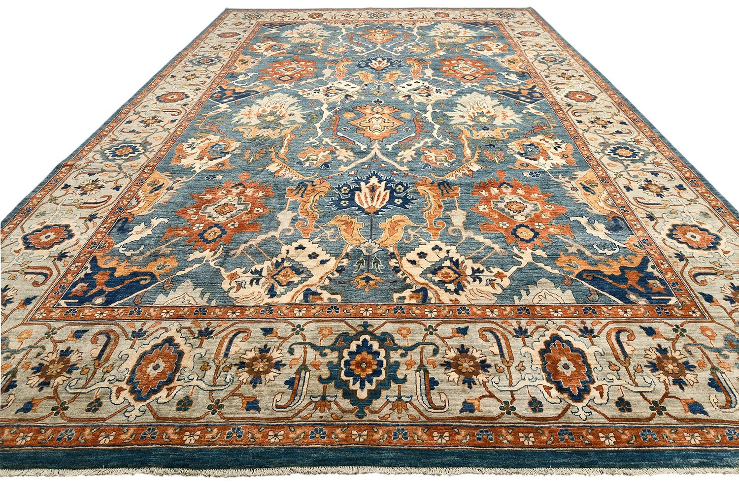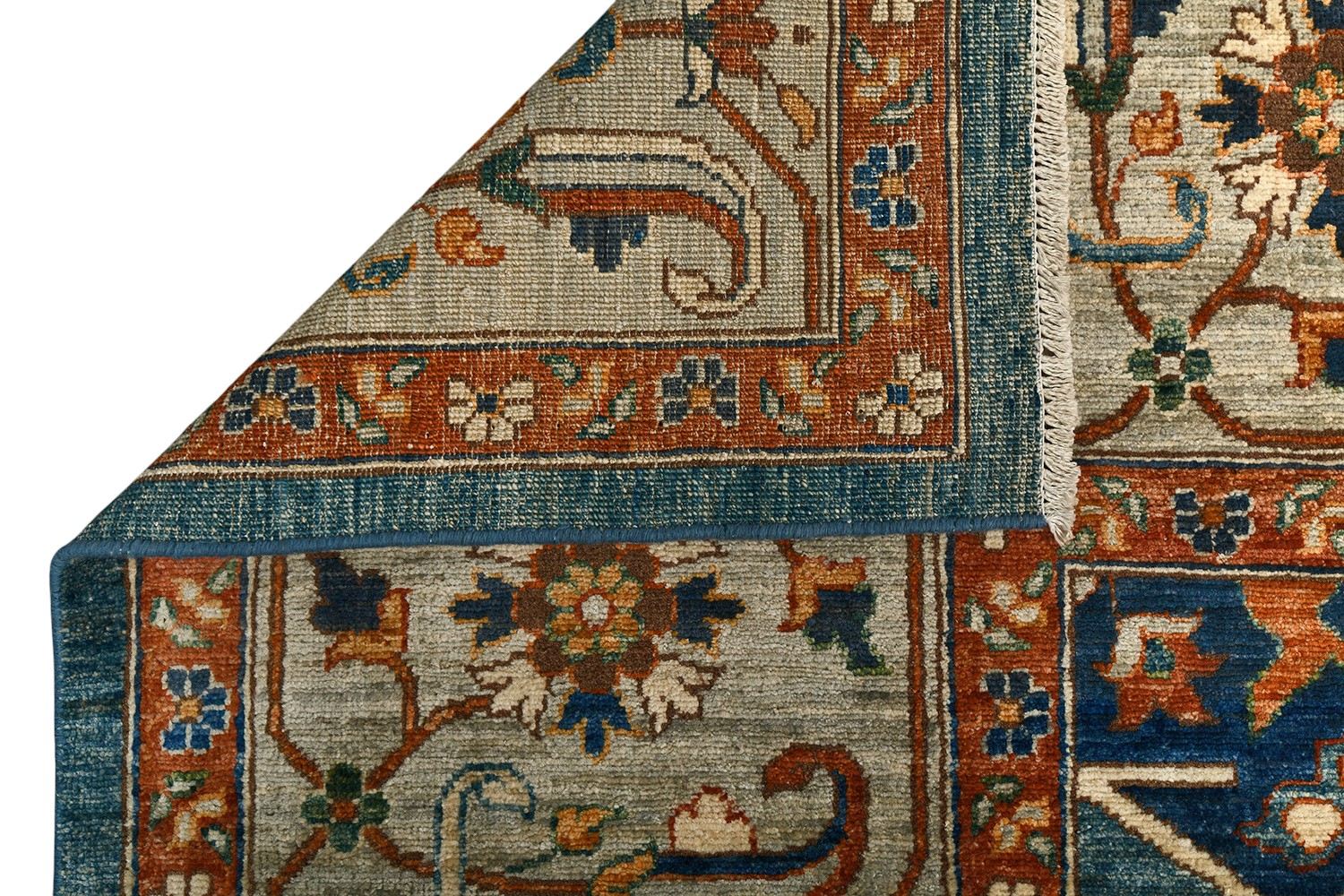Ковер Saltani из Пакистана — это высококачественная ручная работа из натуральной шерсти, выполненная в благородной гамме синих и терракотовых оттенков. Богатый восточный орнамент и гармоничное сочетание цветов придают ковру роскошный и изысканный вид. Он прекрасно дополнит классический или современный интерьер, создавая атмосферу уюта и утонченного стиля.