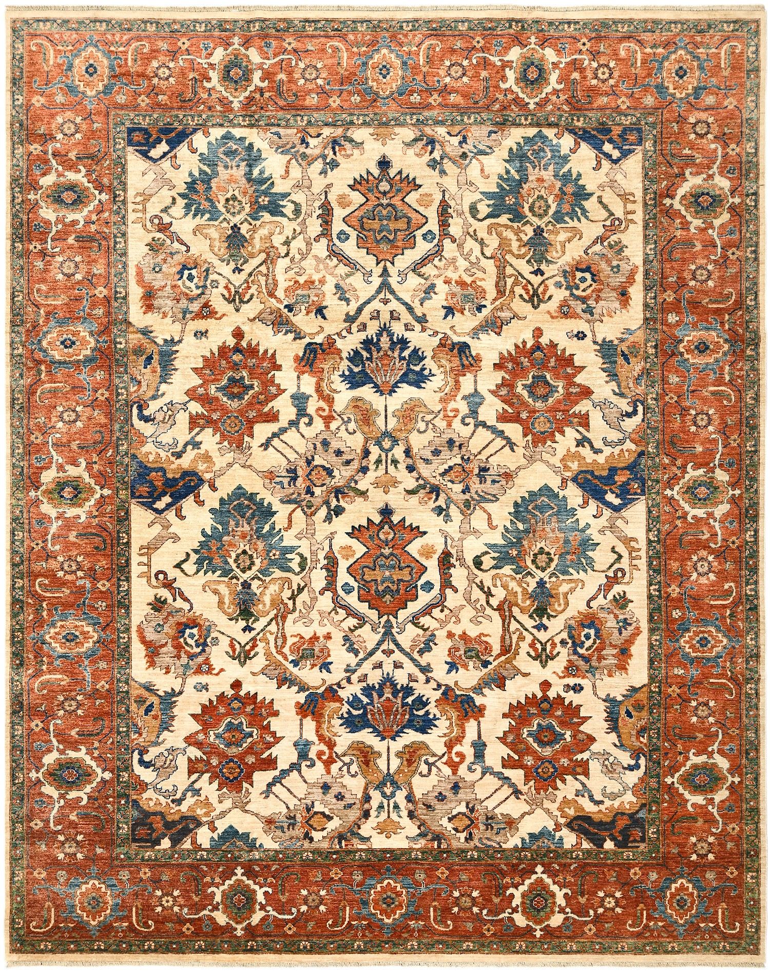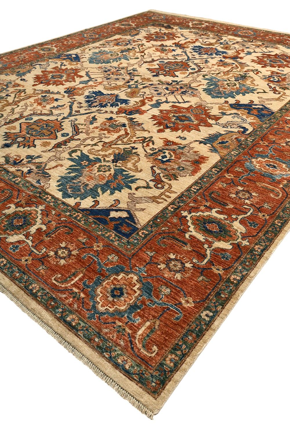 Ковер Saltani из Пакистана — это изделие ручной работы из натуральной шерсти, отличающееся прочностью и долговечностью. Теплые терракотовые тона, гармонично сочетающиеся с бежевым фоном и сложным восточным орнаментом, создают атмосферу уюта и роскоши, подчеркивая утонченный стиль интерьера.