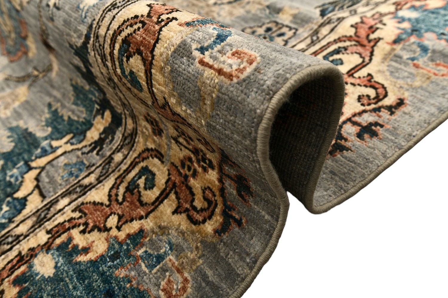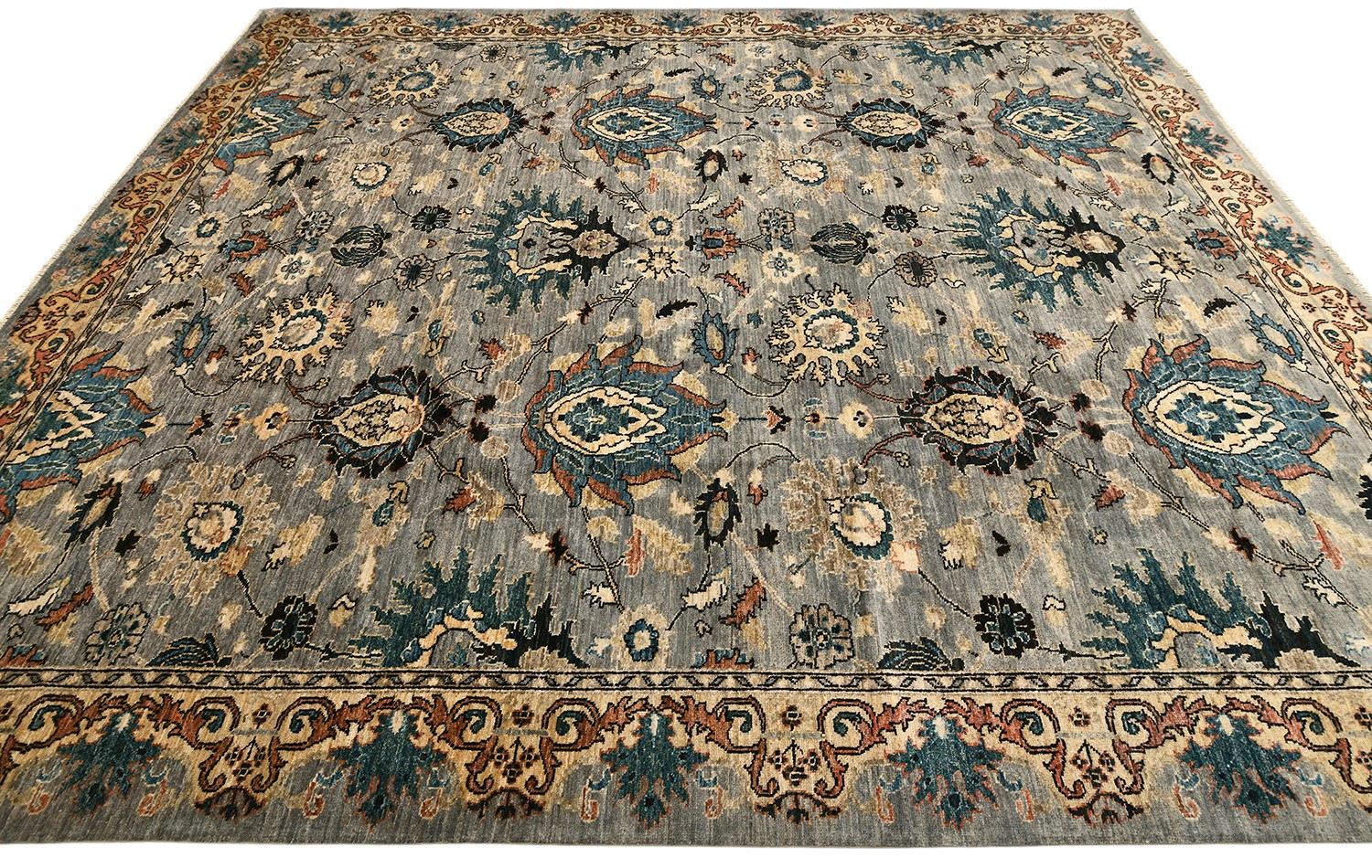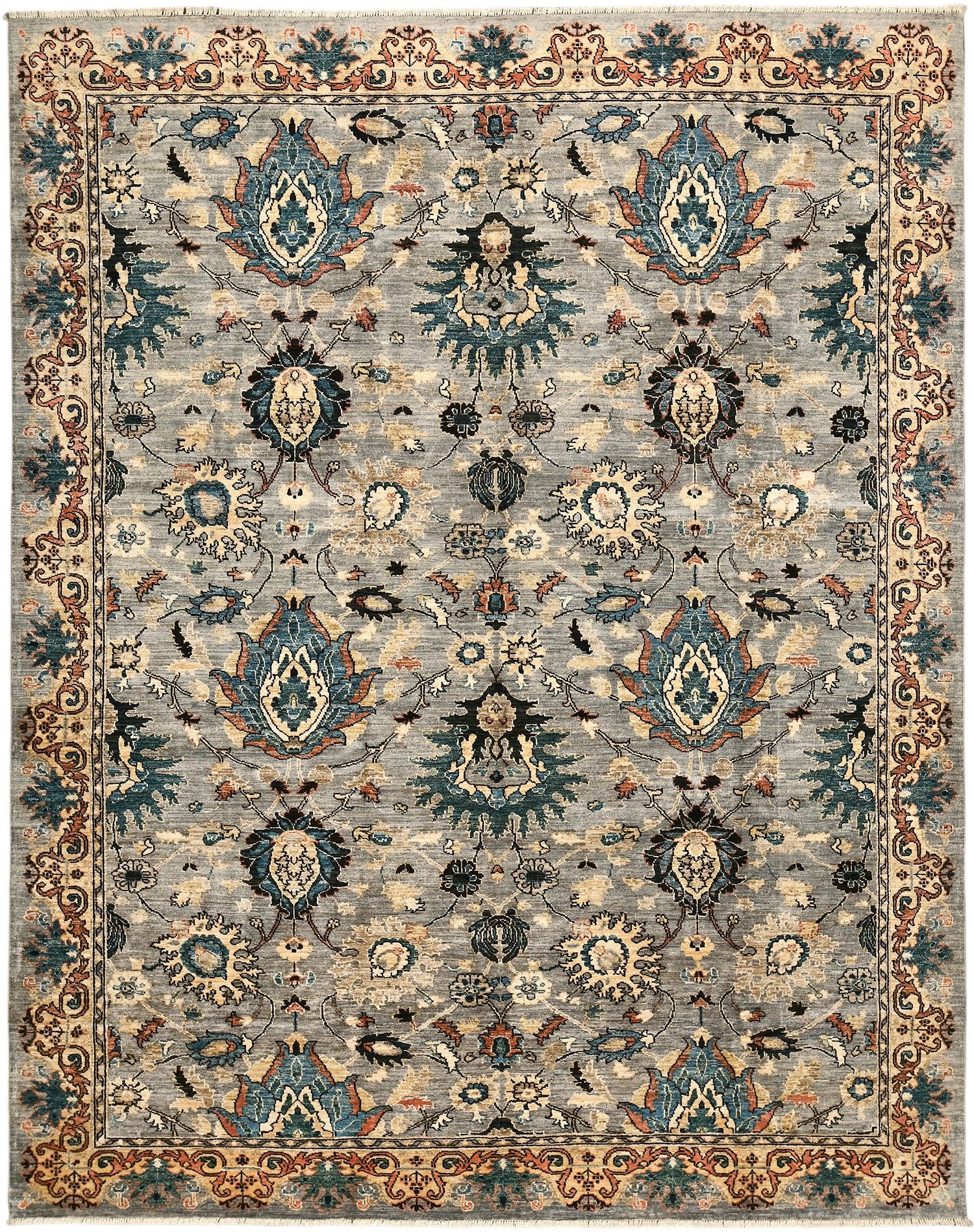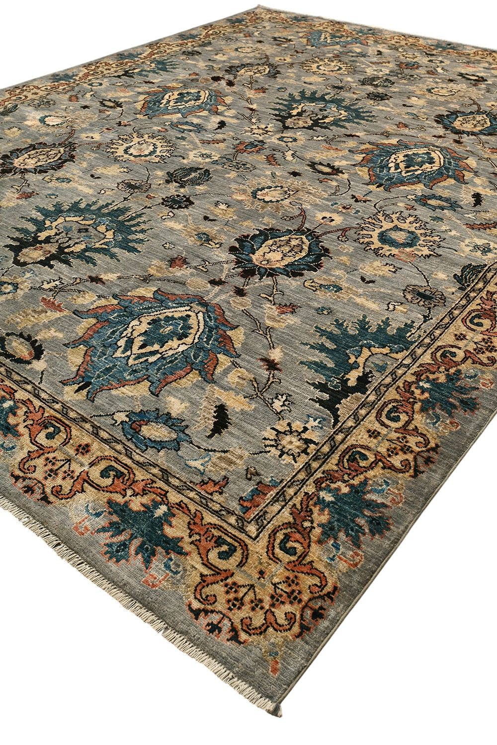 Этот ковер Saltani создан в Пакистане вручную по древним традициям ковроткачества с использованием шерстяной нити веретенной крутки и натуральных красителей. Его нежная серо-голубая гамма гармонично сочетается с бирюзовыми, бежевыми и терракотовыми акцентами, а богатый растительный узор подчеркивает благородство и утонченность дизайна. Такой ковер станет выразительным акцентом в интерьере, наполняя его теплом, стилем и восточной атмосферой.