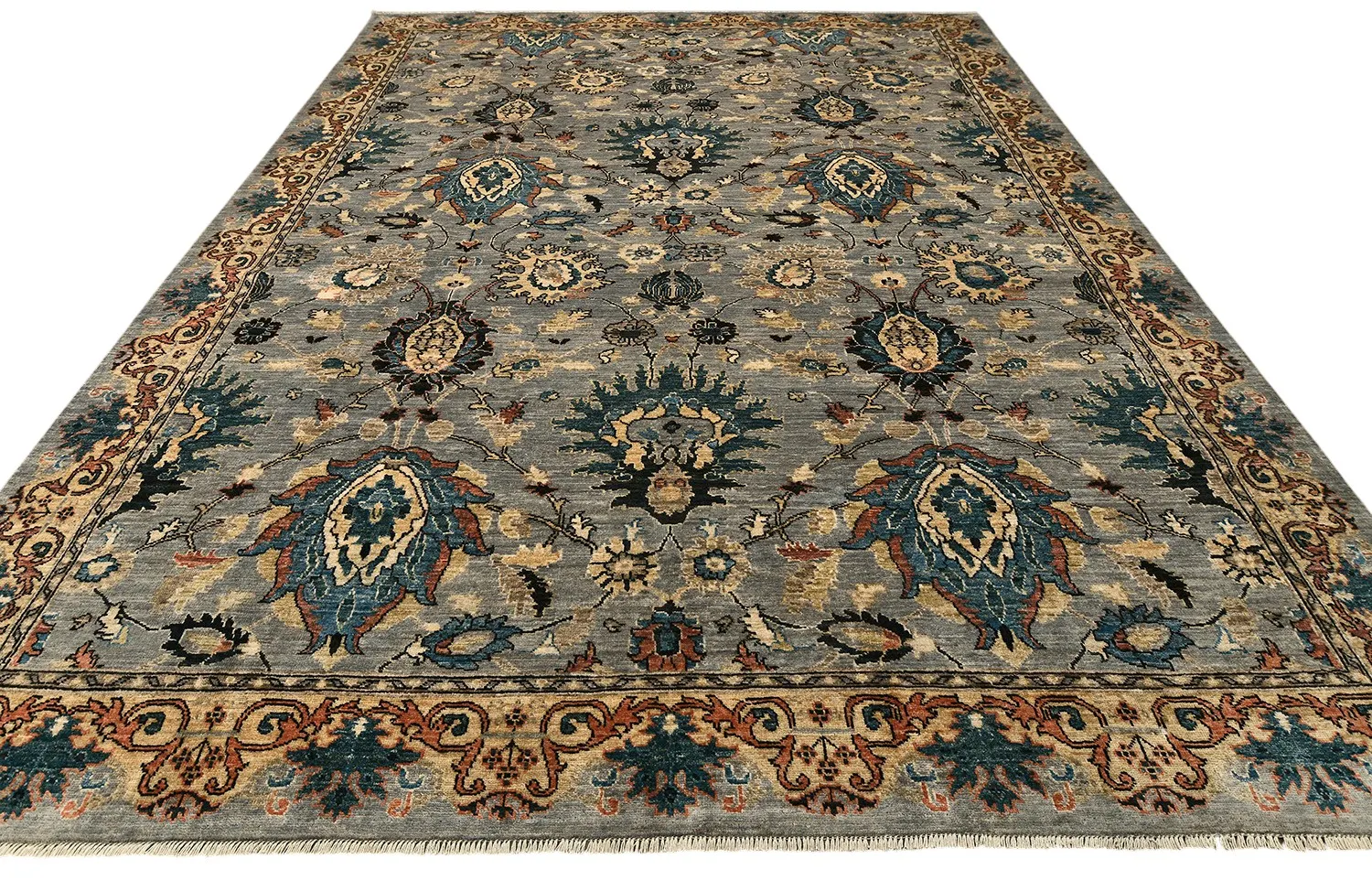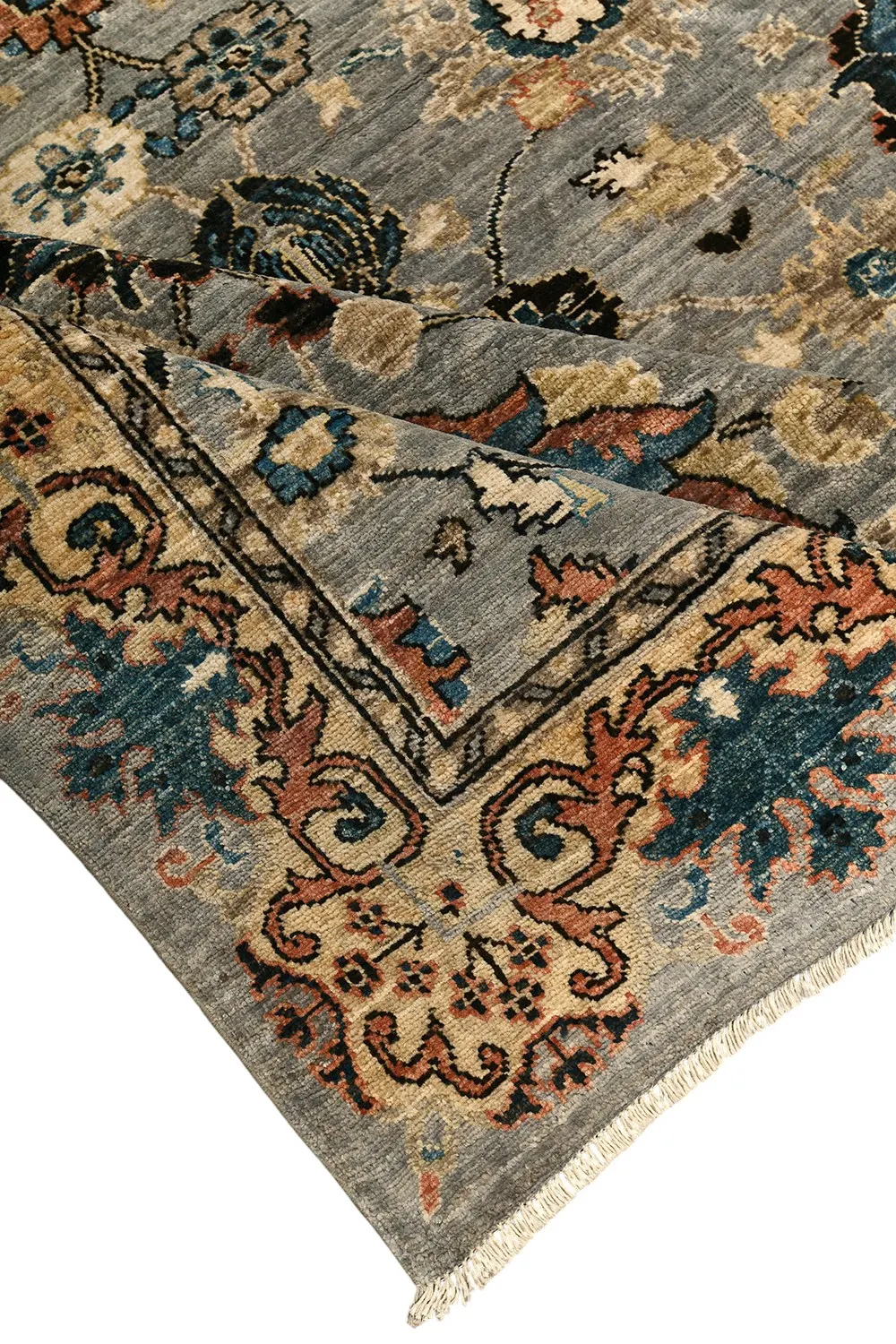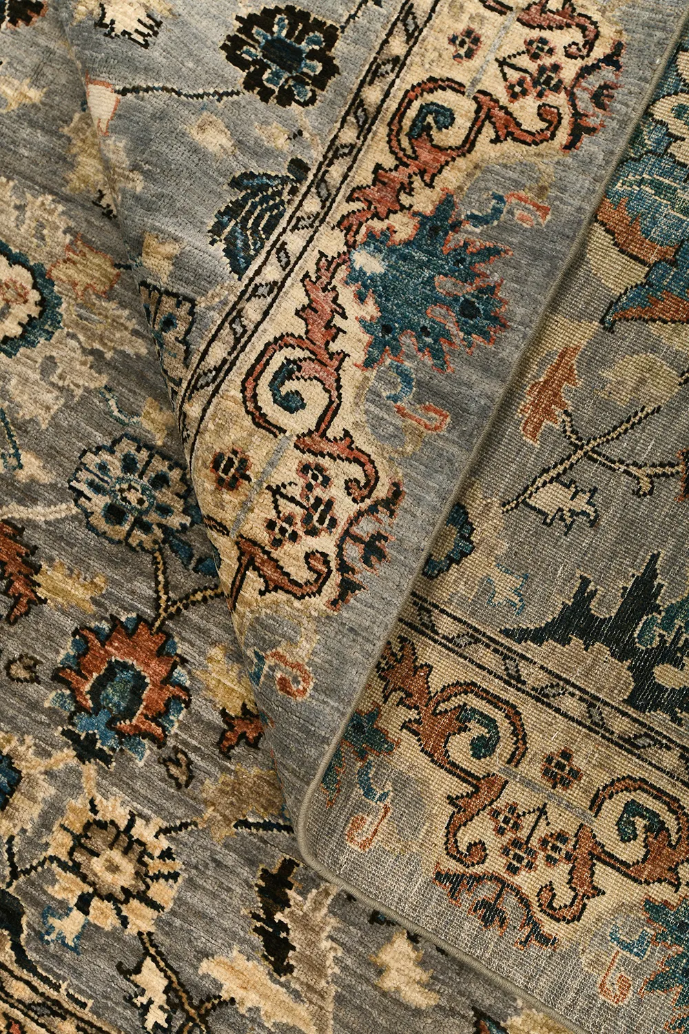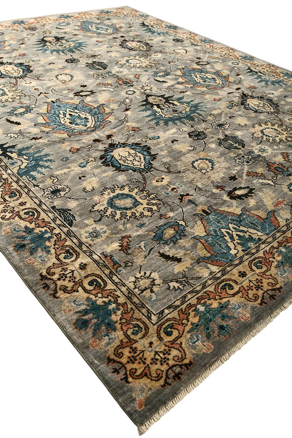 Этот ковер Saltani создан в Пакистане вручную по древним традициям ковроткачества с использованием шерстяной нити веретенной крутки и натуральных красителей. Его нежная серо-голубая гамма гармонично сочетается с бирюзовыми, бежевыми и терракотовыми акцентами, а богатый растительный узор подчеркивает благородство и утонченность дизайна. Такой ковер станет выразительным акцентом в интерьере, наполняя его теплом, стилем и восточной атмосферой.