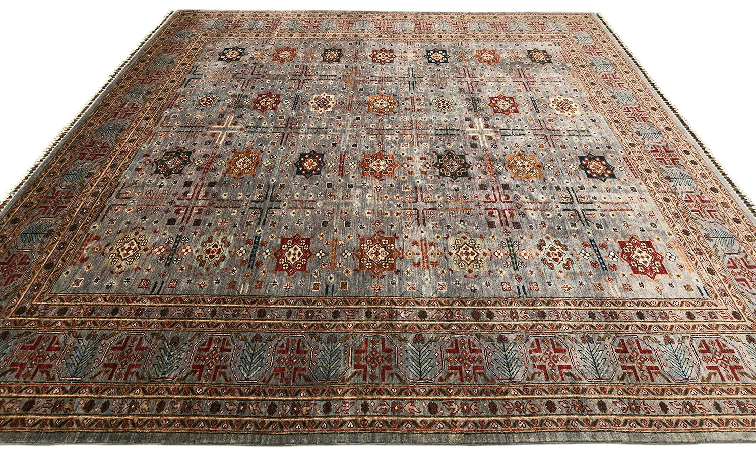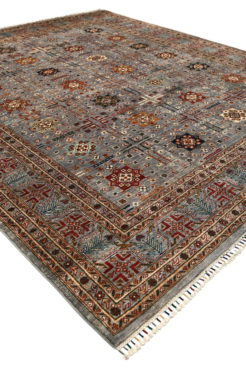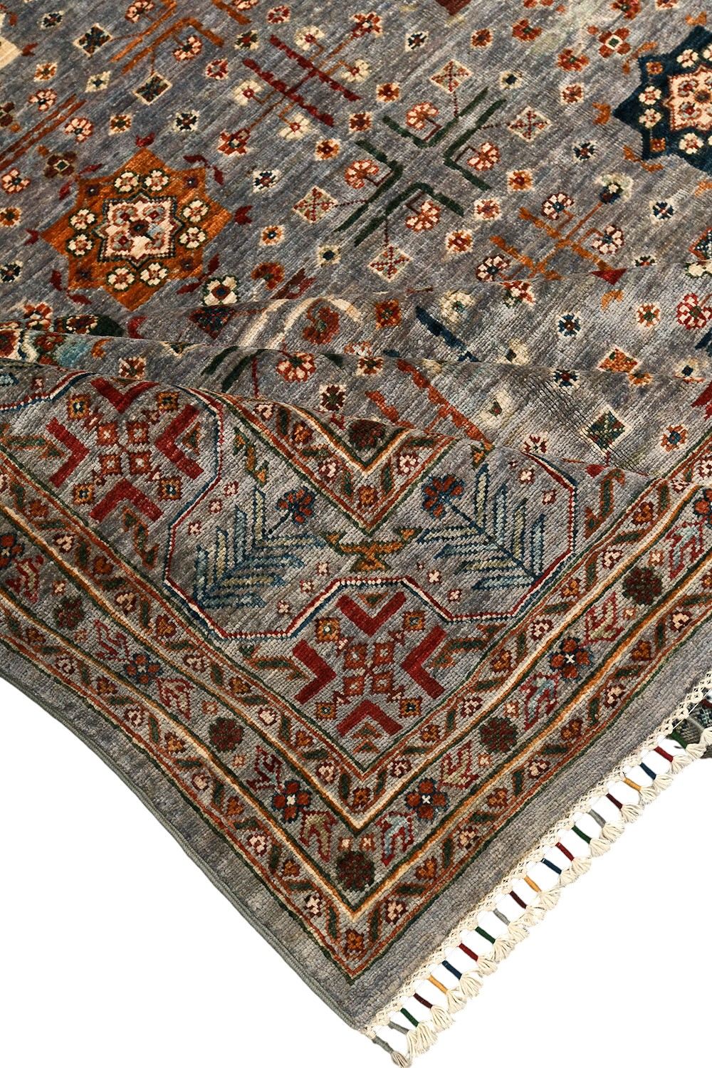 Ручной ковер Saltani из Пакистана соткан по старинной технологии из шерстяной нити веретенной крутки с использованием натуральных красителей. Гармоничная палитра теплых и холодных оттенков с традиционным восточным узором придает ковру изысканность и выразительность. Такой ковер не только украсит интерьер, но и станет долговечным символом уюта и статуса.