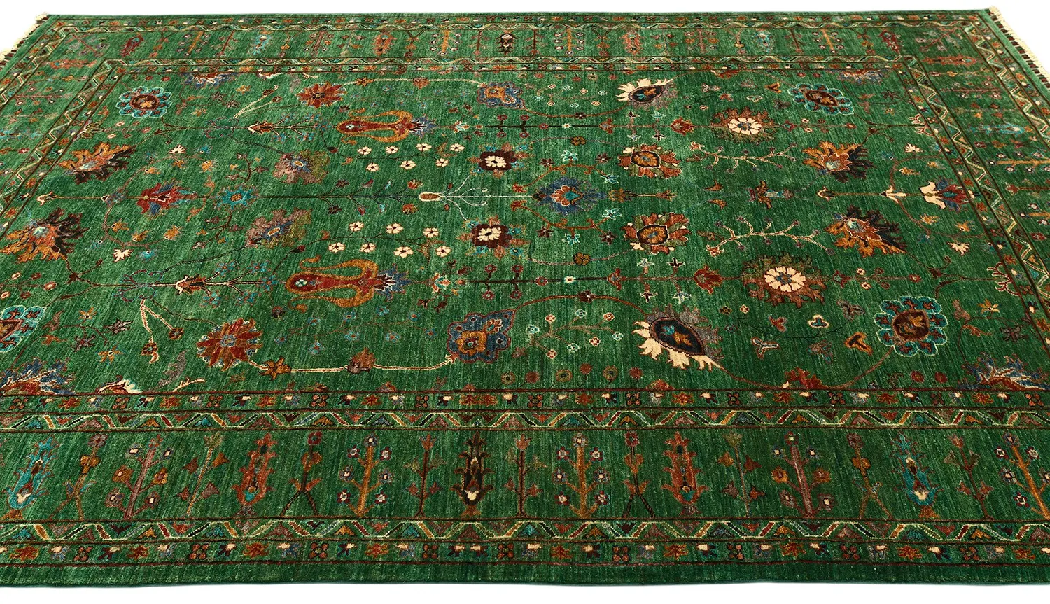 Пакистанский шерстяной ковер Ziegler поражает глубиной изумрудного фона и гармонией восточного орнамента. Яркие цветочные мотивы и тонкие линии узоров делают его эффектным акцентом, который добавит пространству роскоши и выразительности. Этот ковер выполнен вручную из натуральной шерсти, что гарантирует его долговечность и неповторимую эстетику.