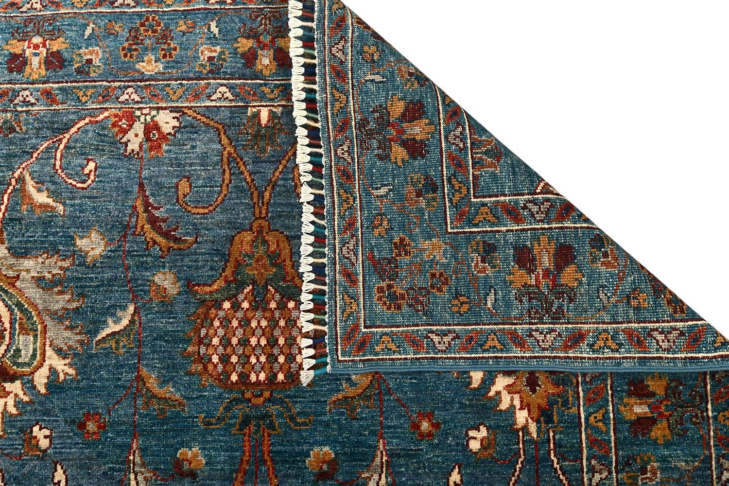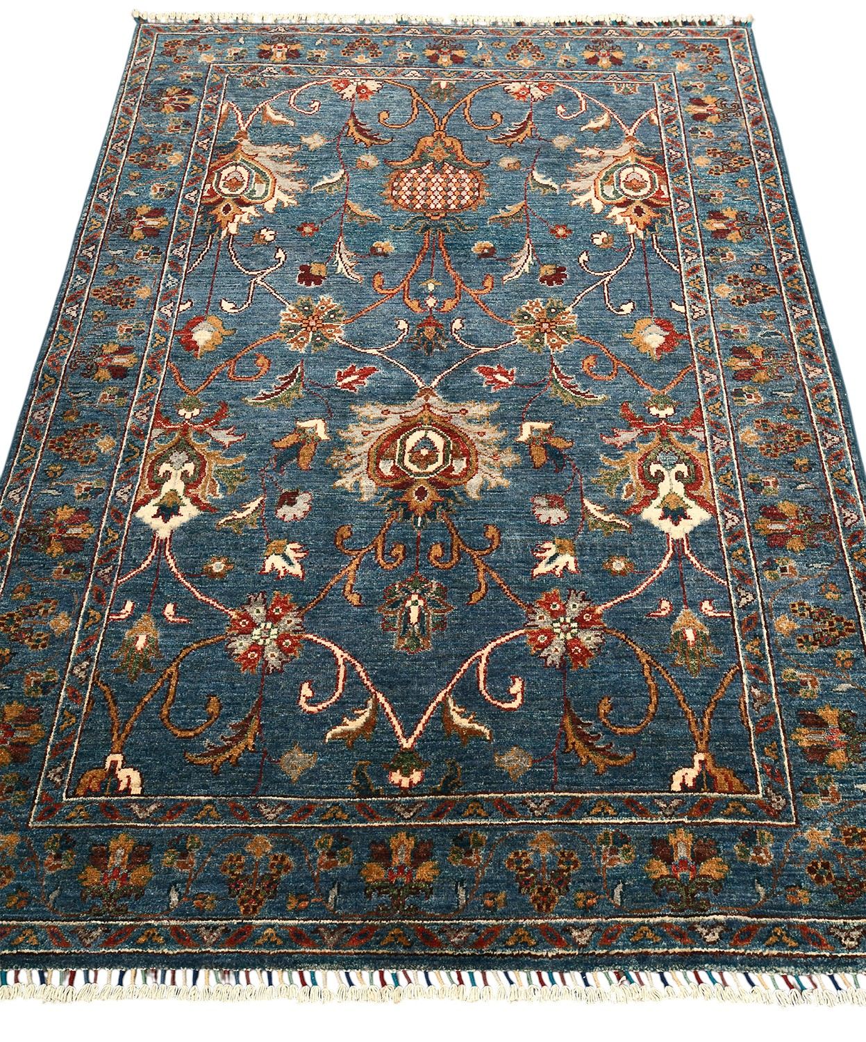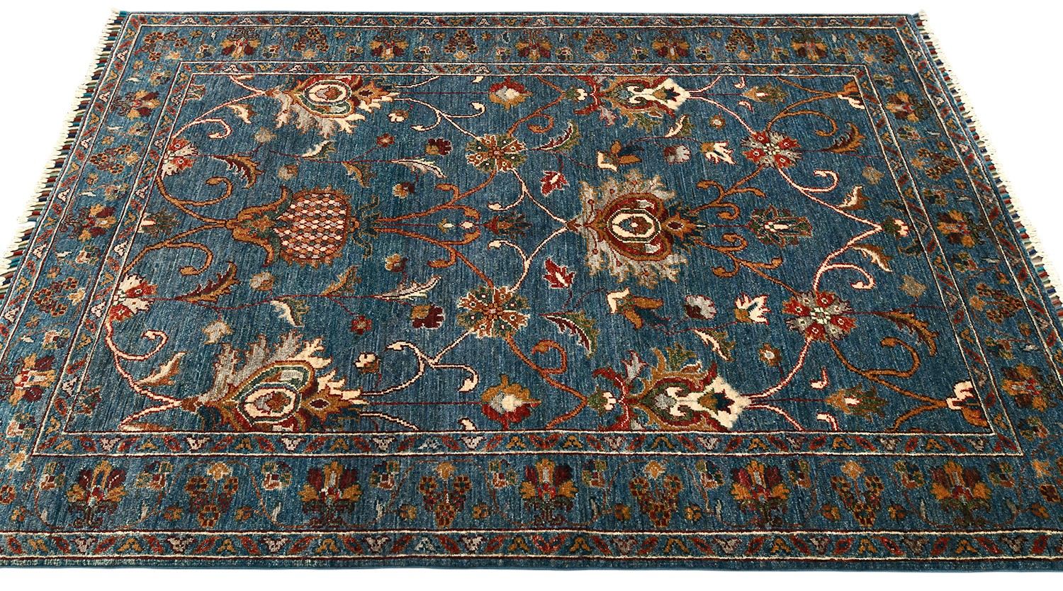 Пакистанский шерстяной ковер Ziegler — это сочетание восточной традиции и утонченного стиля. Роскошный синий фон подчеркивает изысканные цветочные мотивы в теплых оттенках бежевого, бордового и золотистого, создавая гармоничное и выразительное оформление. Натуральная шерсть ручной работы придает ковру мягкость, долговечность и благородный вид. Такой ковер станет не только украшением, но и акцентным элементом вашего интерьера, подчеркивающим изысканный вкус.
