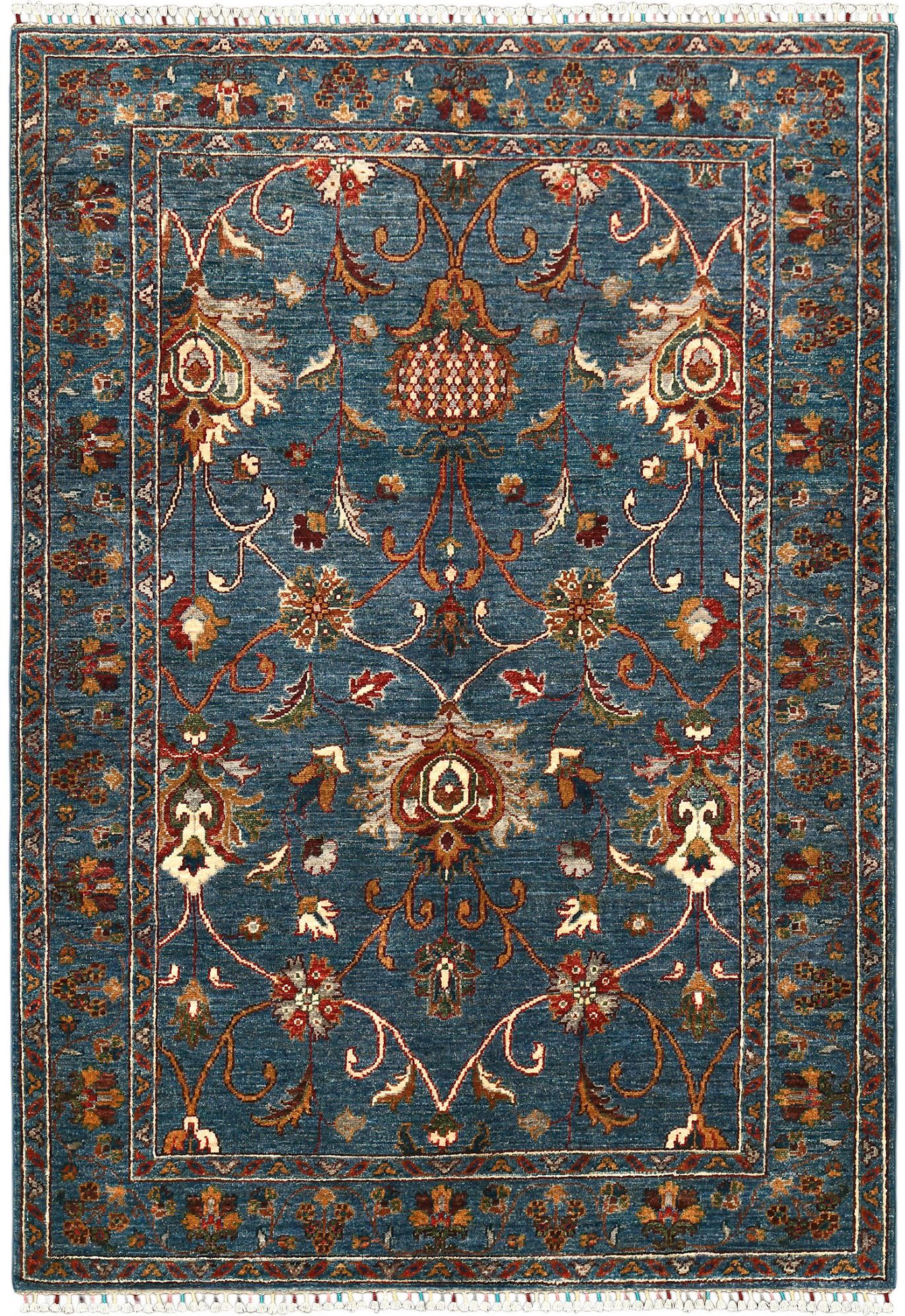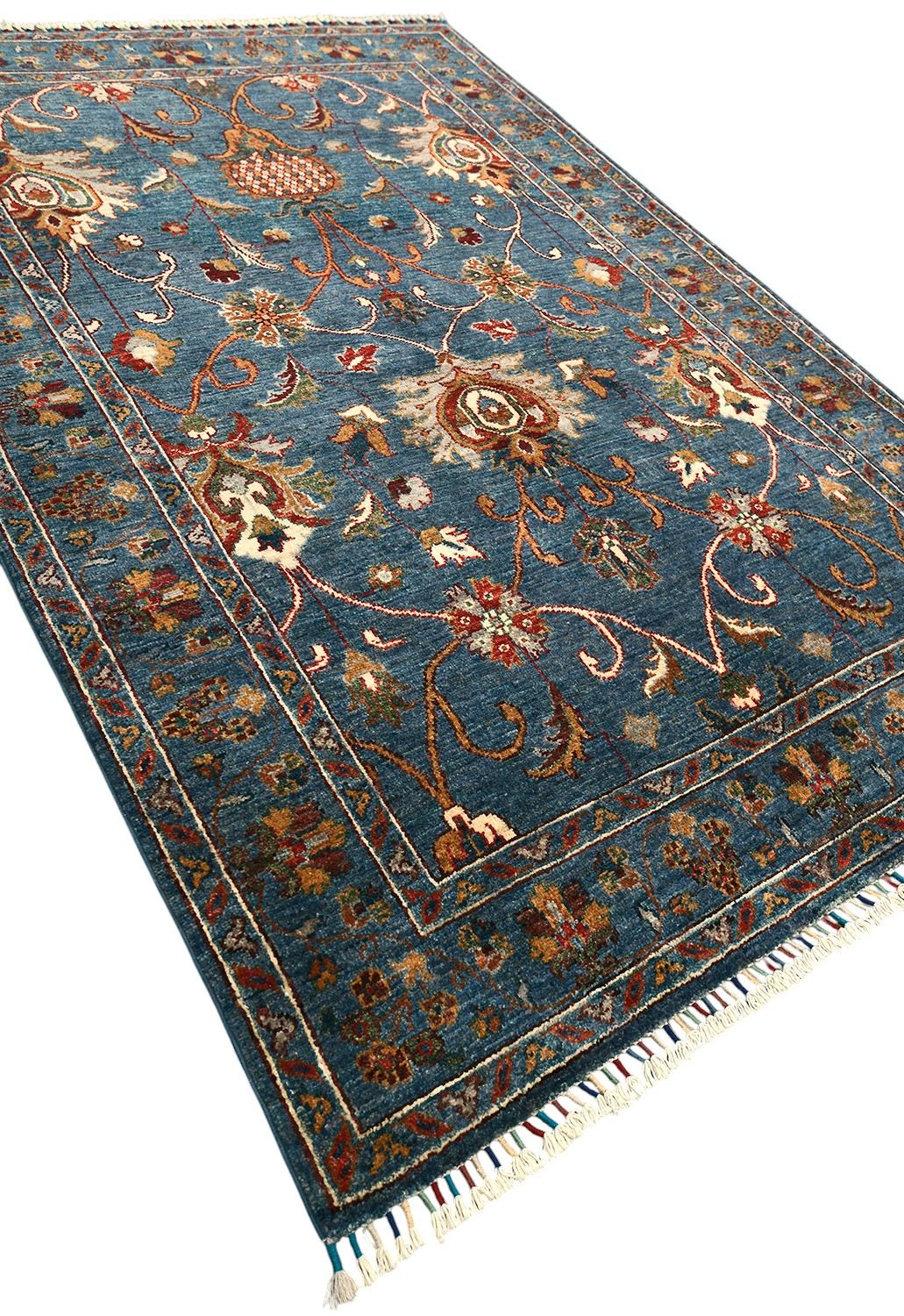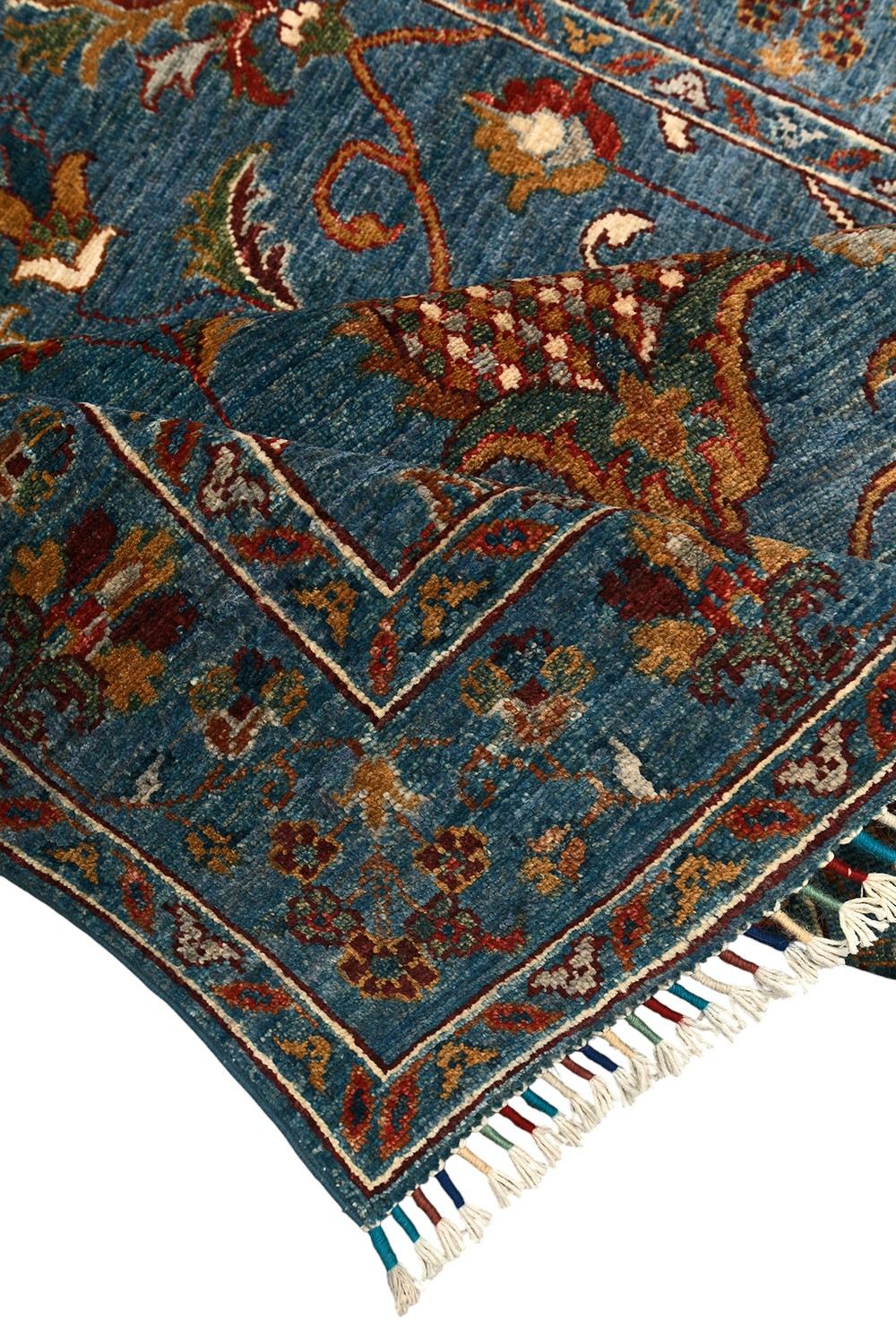 Пакистанский шерстяной ковер Ziegler — это сочетание восточной традиции и утонченного стиля. Роскошный синий фон подчеркивает изысканные цветочные мотивы в теплых оттенках бежевого, бордового и золотистого, создавая гармоничное и выразительное оформление. Натуральная шерсть ручной работы придает ковру мягкость, долговечность и благородный вид. Такой ковер станет не только украшением, но и акцентным элементом вашего интерьера, подчеркивающим изысканный вкус.