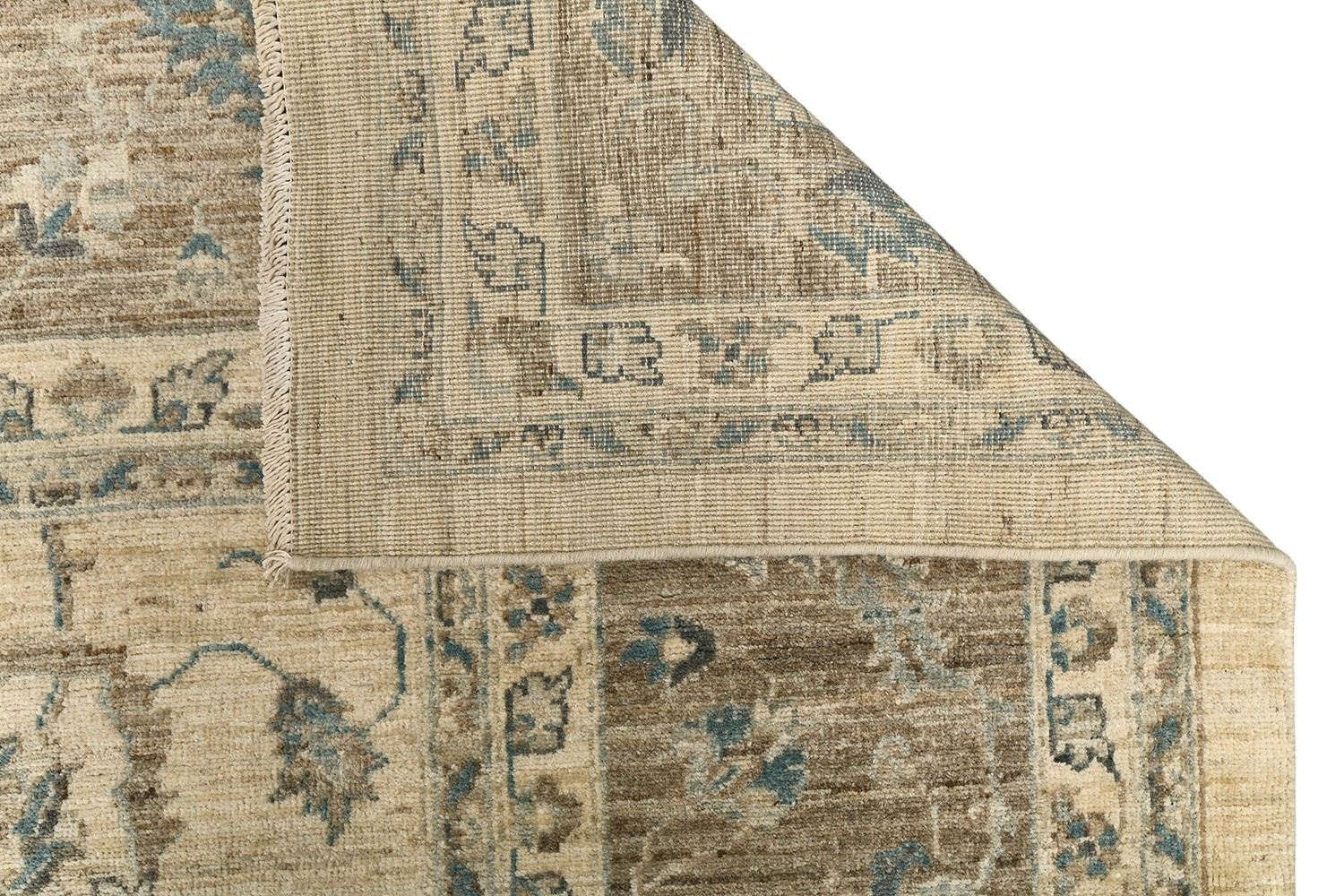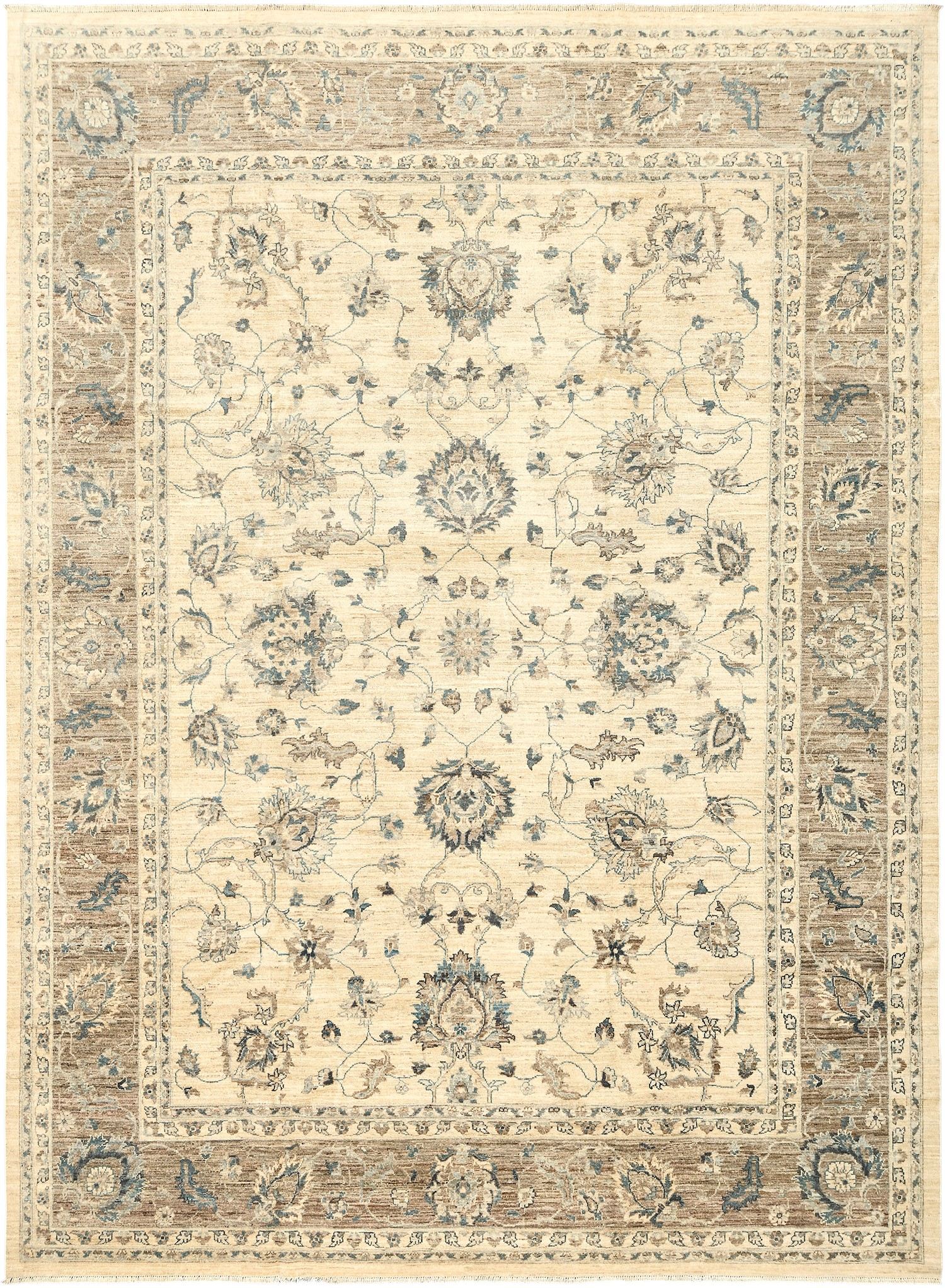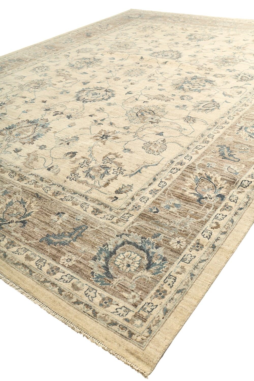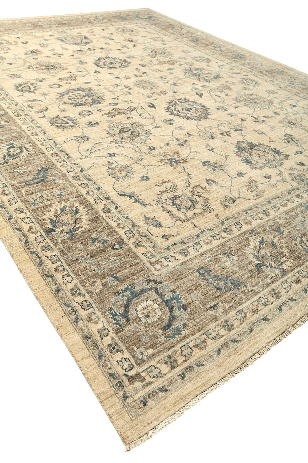 Пакистанский шерстяной ковер Ziegler ручной работы выполнен в светлой цветовой гамме с гармоничным сочетанием кремового, бежевого и голубовато-серого оттенков. Классический цветочный орнамент в восточном стиле придает ему утонченность и благородство. Благодаря мягкой шерсти и плотному узору ковер не только украсит интерьер, но и создаст атмосферу тепла и уюта.