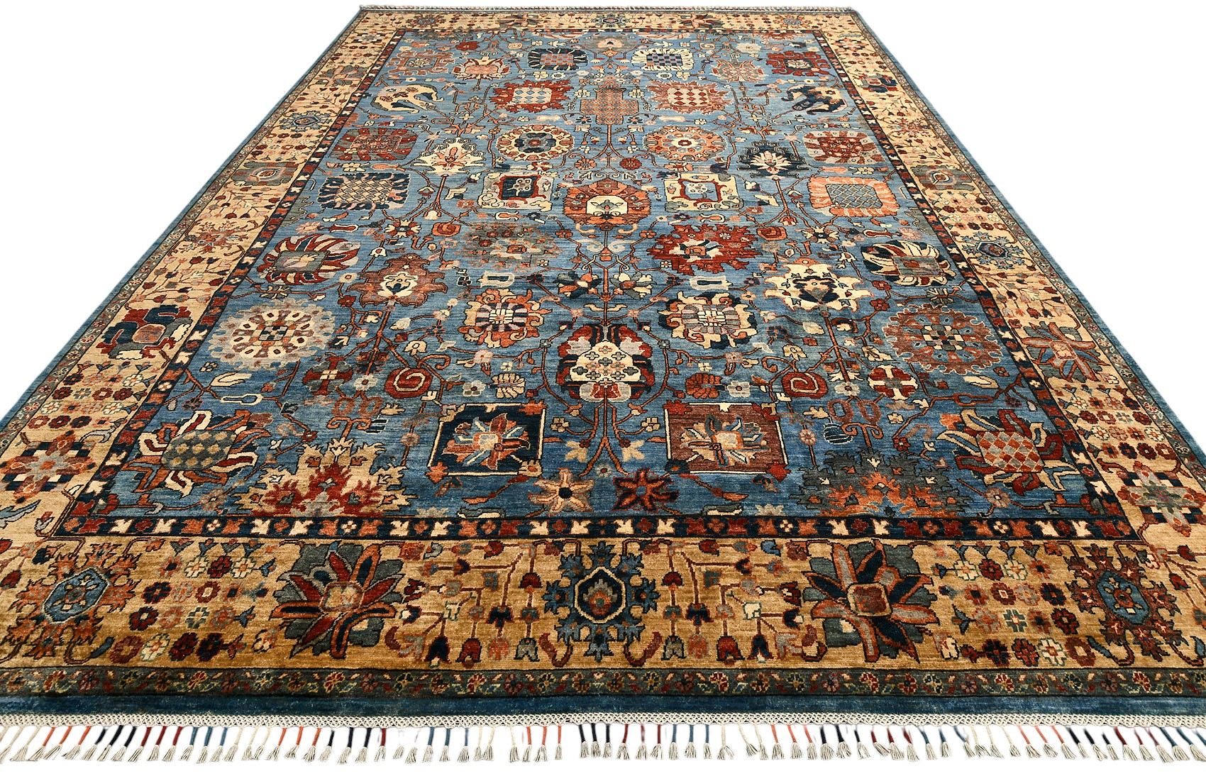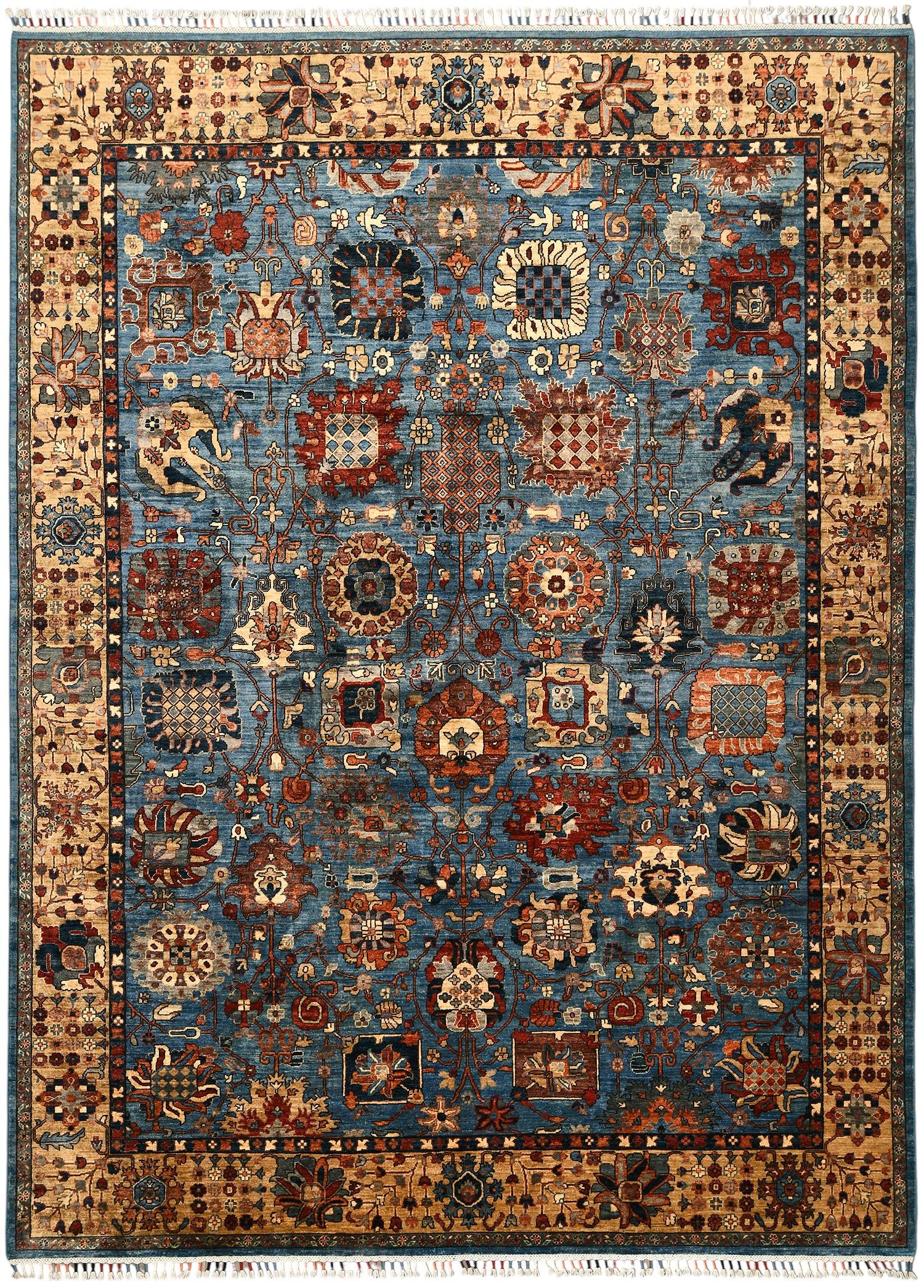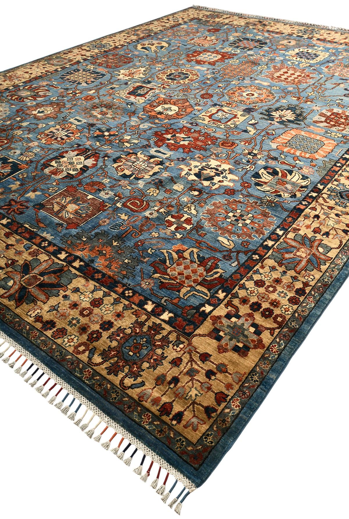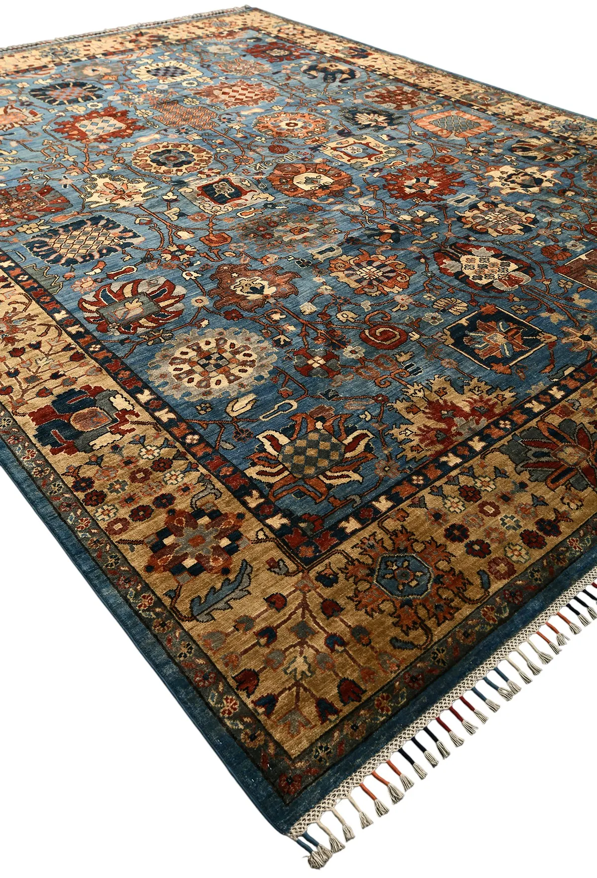 Ковер Ziegler из Пакистана – это гармония восточных традиций и утонченной эстетики. Ручная работа из натуральной шерсти придает ему исключительную прочность и мягкость, а глубокий синий фон с бежево-терракотовыми узорами создает роскошный контраст. Богатый орнамент с цветочными и геометрическими мотивами делает этот ковер выразительным акцентом в любом интерьере.