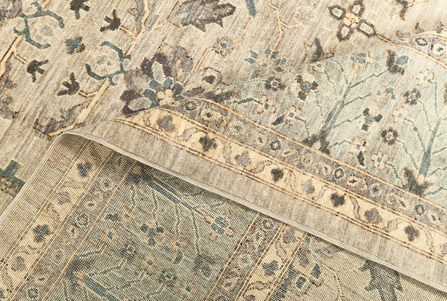 Пакистанский шерстяной ковер Ziegler ручной работы отличается мягкой цветовой гаммой с акцентами бежевого и голубого, создающей атмосферу уюта и гармонии. Классический восточный узор подчеркивает изысканный вкус и станет гармоничным дополнением как для современного, так и для классического интерьера.