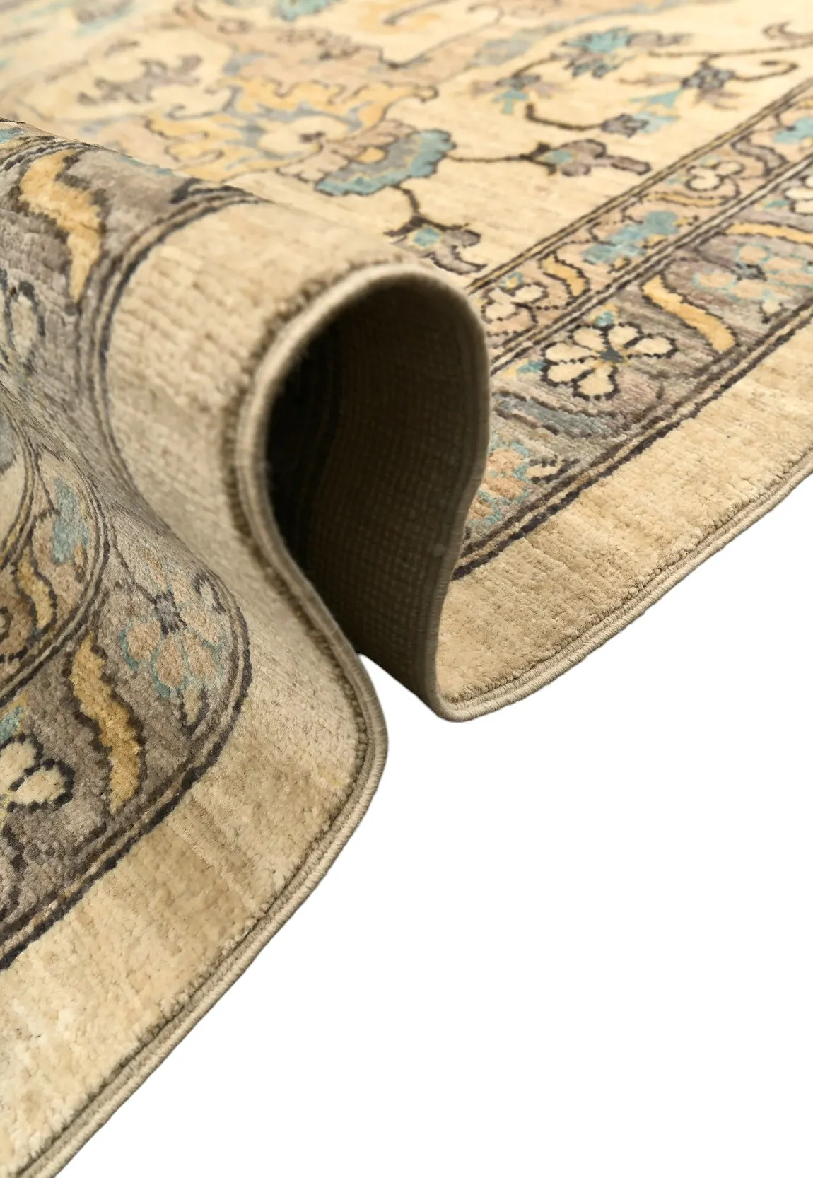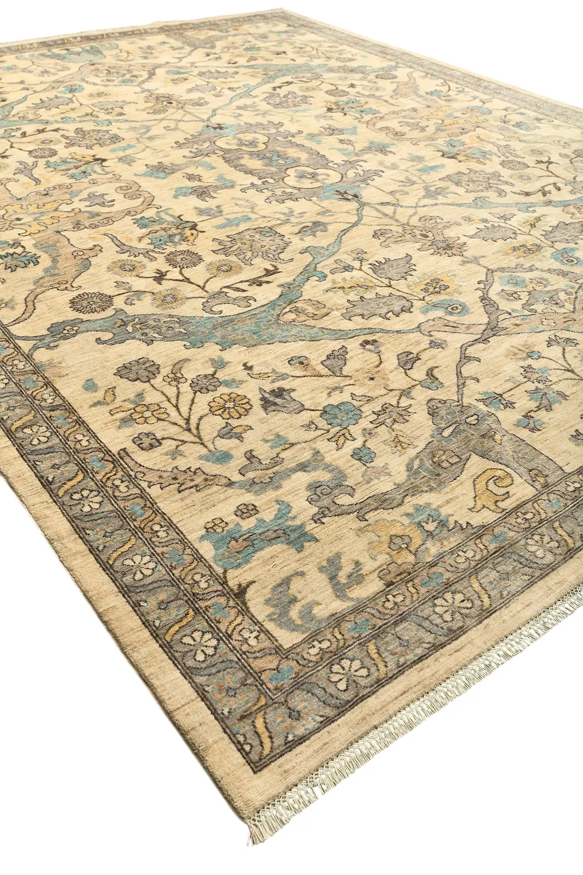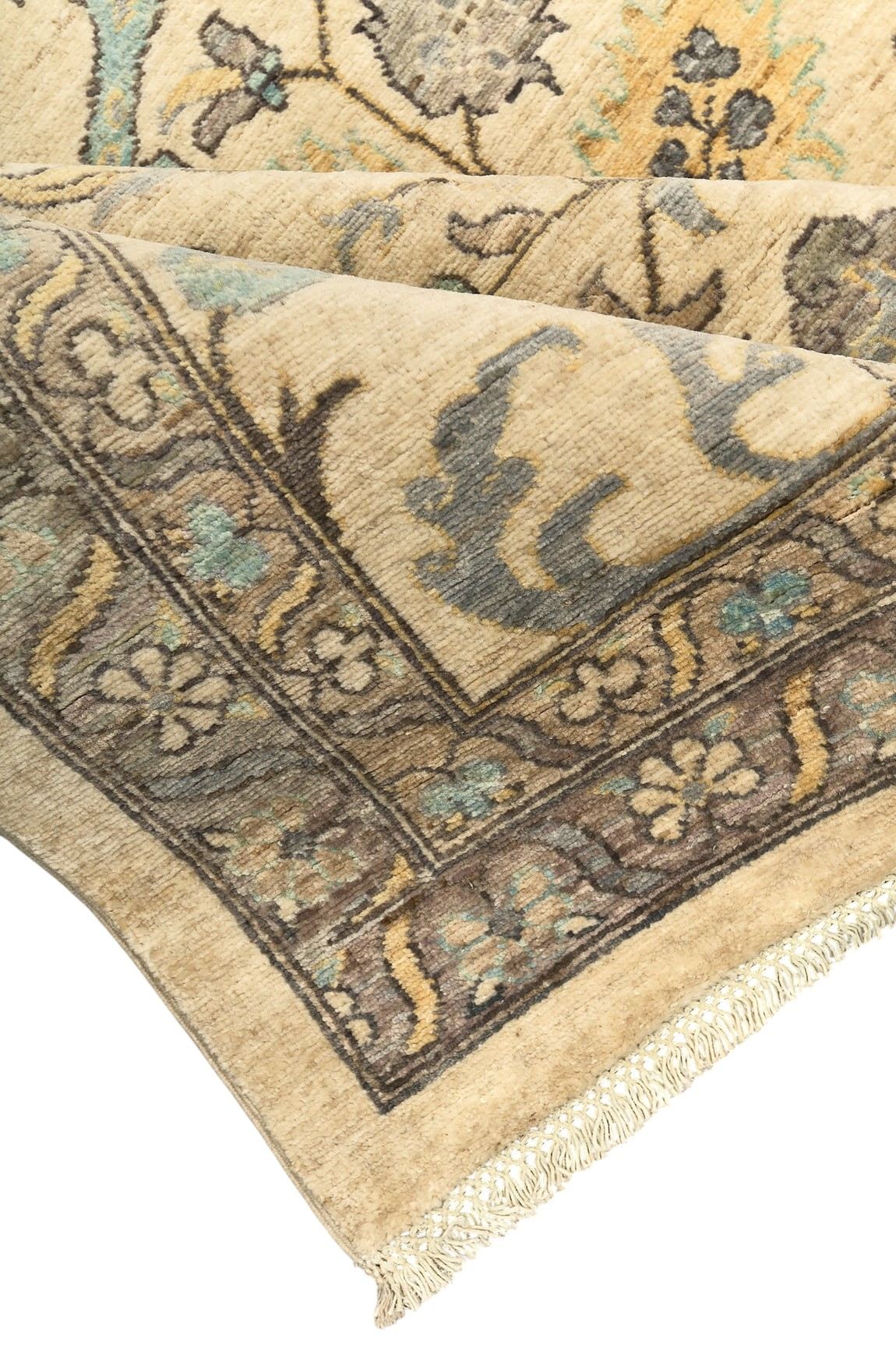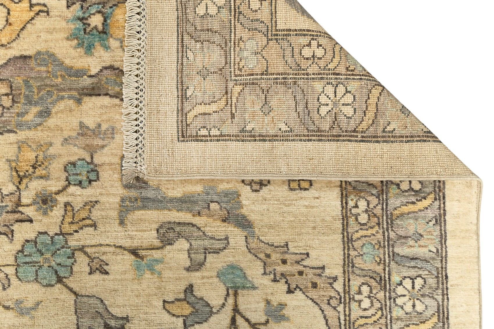 Шерстяной ковер Ziegler из Пакистана – воплощение восточной утонченности и мастерства. Его нежная бежево-кремовая основа украшена изящным растительным орнаментом с мягкими голубыми и серыми оттенками, что придает ковру свежесть и легкость. Классический симметричный рисунок подчеркивает гармонию и элегантность, делая изделие идеальным дополнением к современным и традиционным интерьерам.