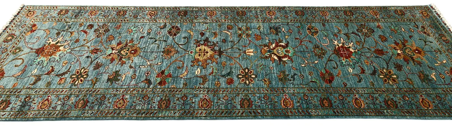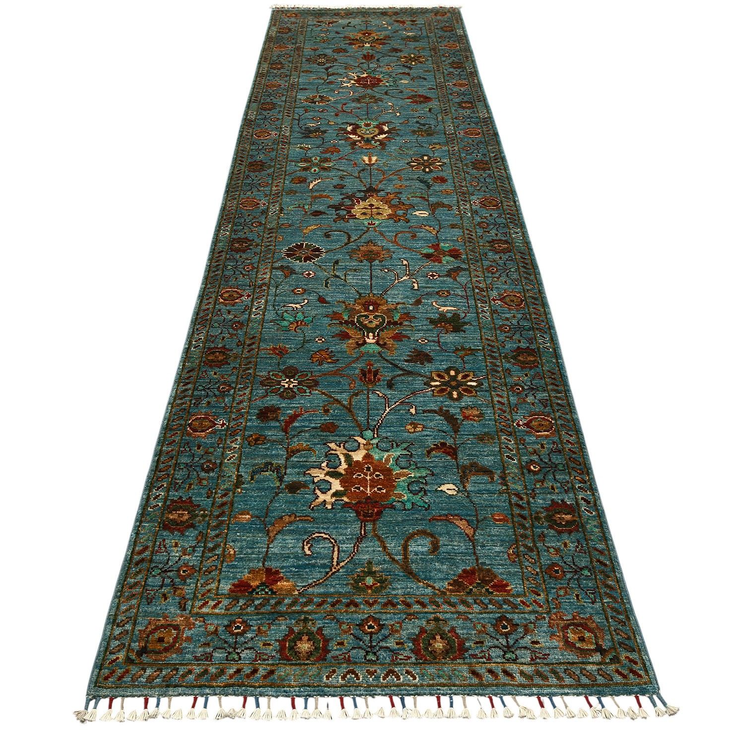 Эта пакистанская ковровая дорожка Ziegler соткана вручную из натуральной шерсти высшего качества. Богатый орнамент с изящными цветочными мотивами на глубоком бирюзовом фоне придает интерьеру утонченность и гармонию. Идеально подойдет для оформления коридоров, лестниц или длинных пространств, создавая атмосферу восточного уюта и изящества.
