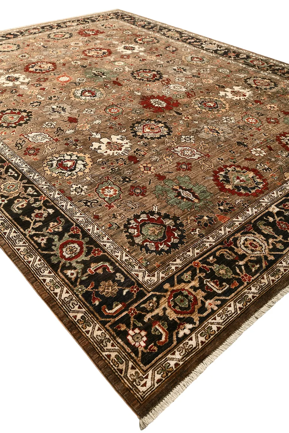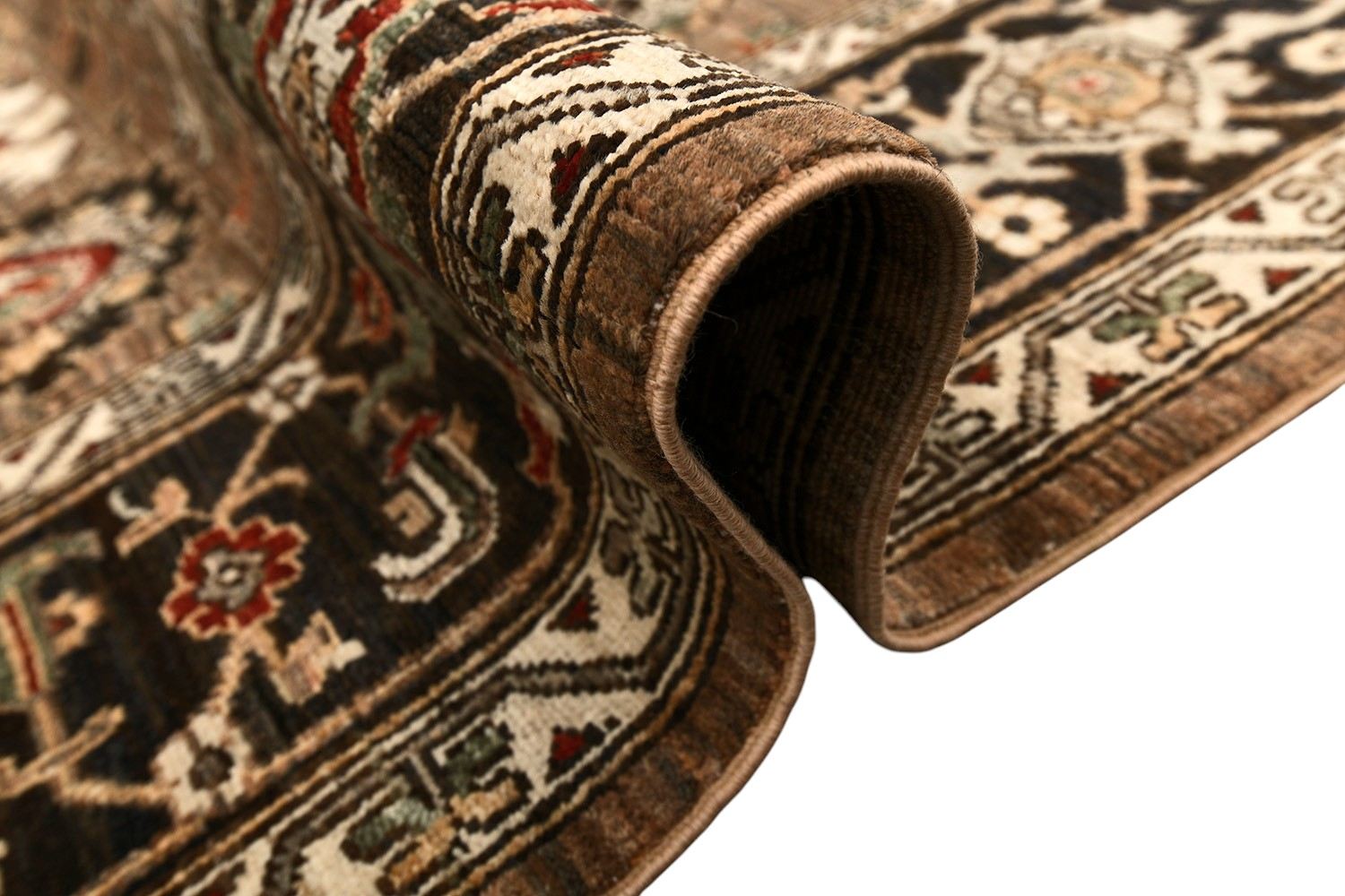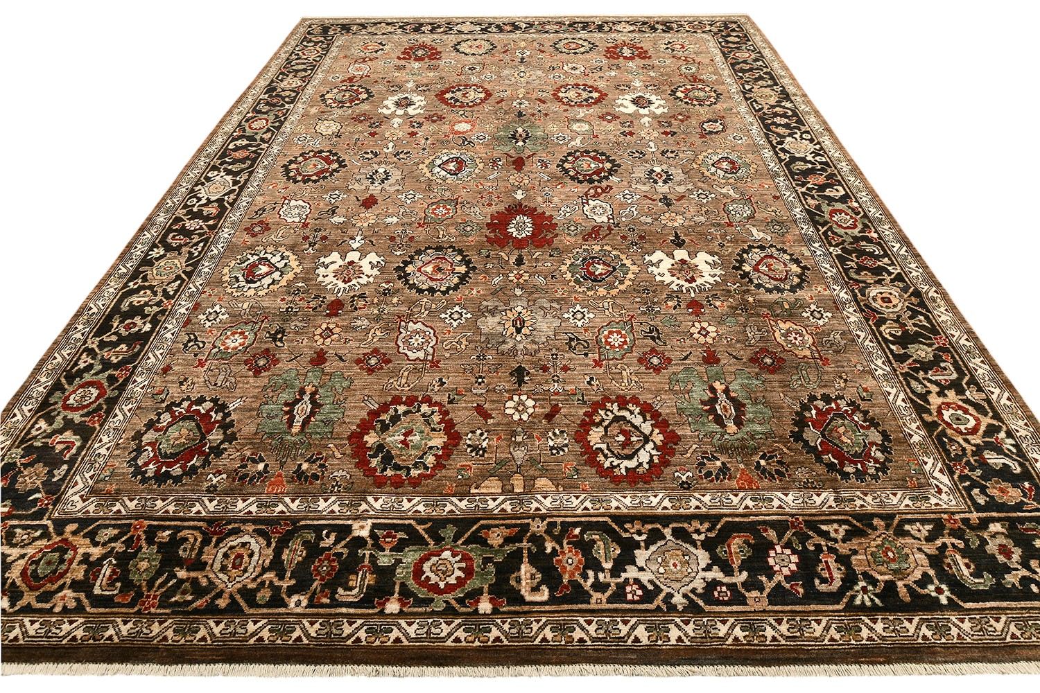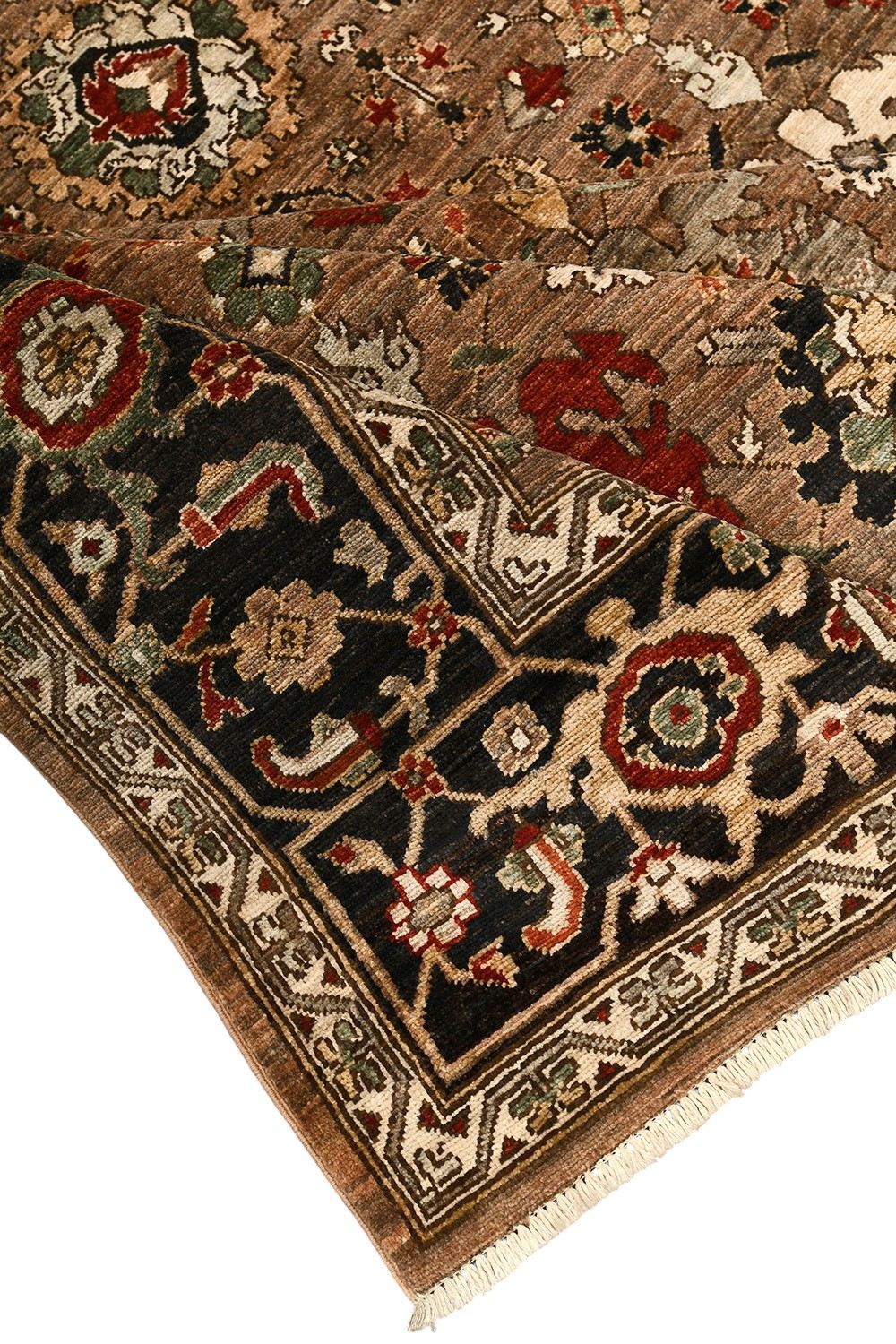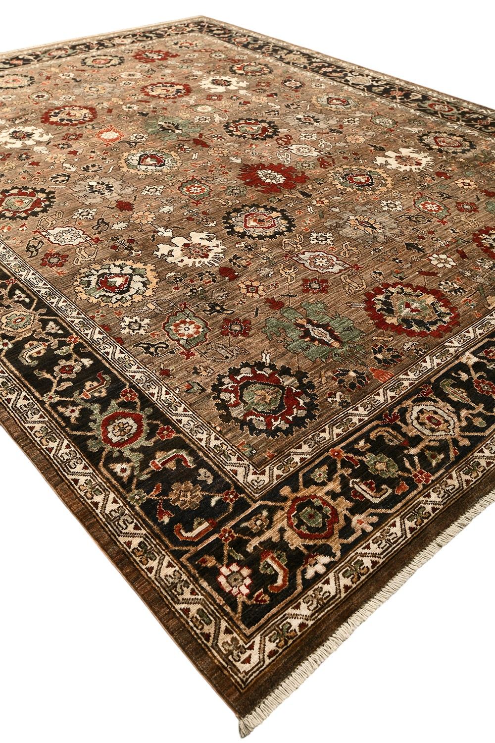 Этот пакистанский ковер Ziegler ручной работы выполнен из натуральной шерсти по древней технологии ткачества, где используется нить веретенной крутки и натуральные красители. Его глубокая гамма коричневых и терракотовых тонов дополнена акцентами зелёного, красного и кремового, а утончённый растительный орнамент подчеркивает его изысканный характер. Такой ковер станет достойным украшением классического и современного интерьера, наполняя пространство теплом и благородством.