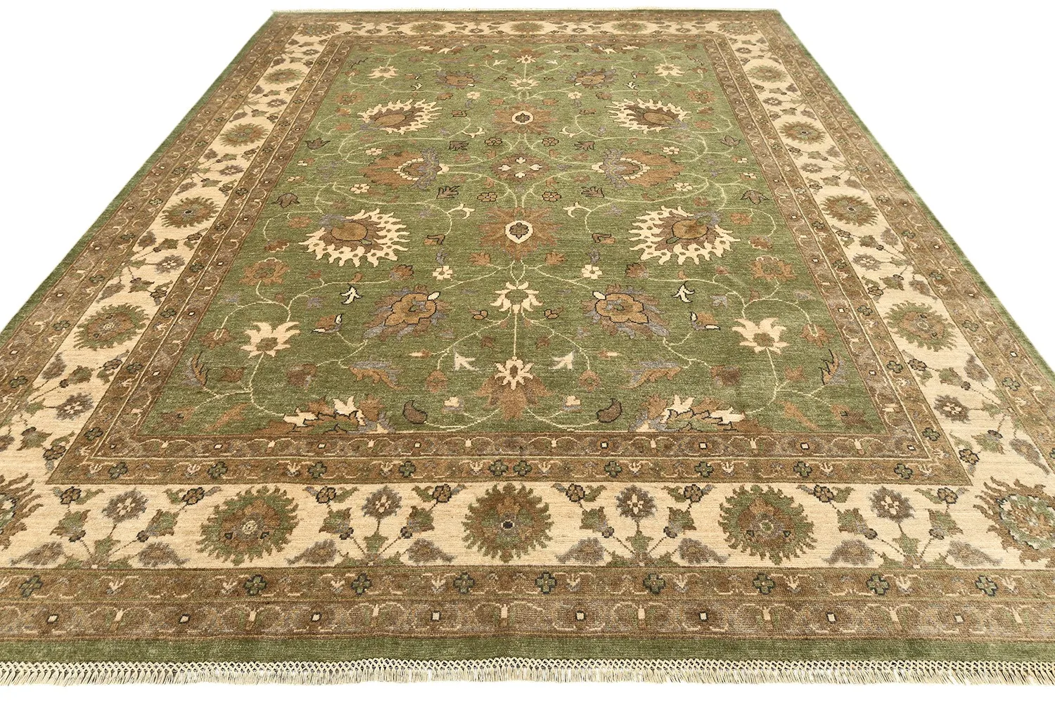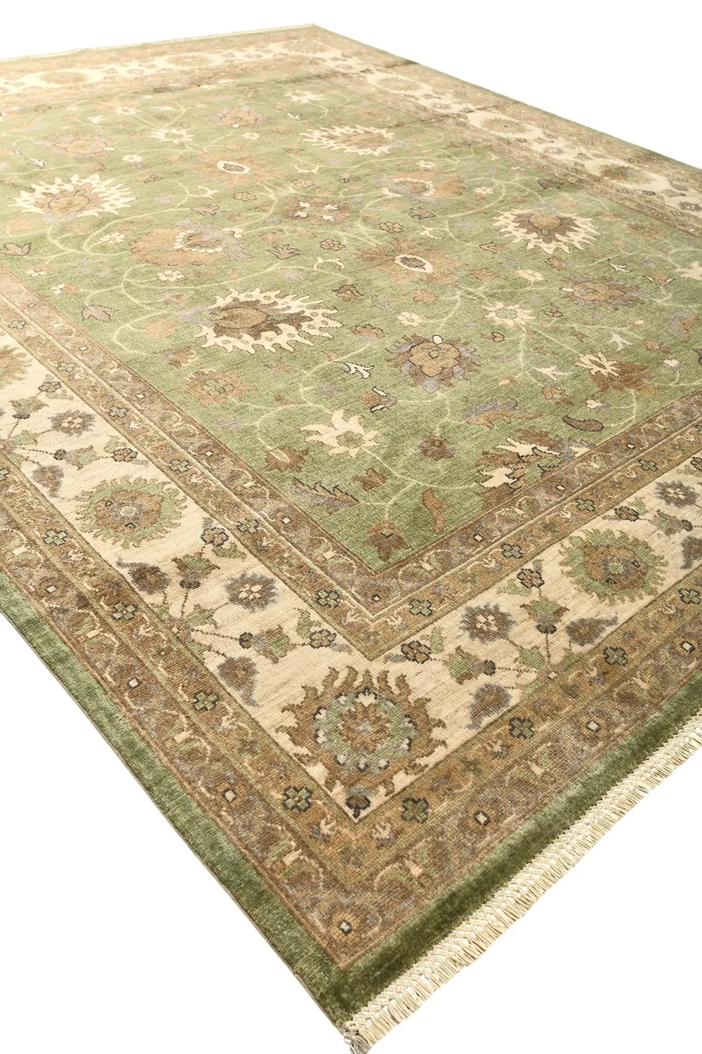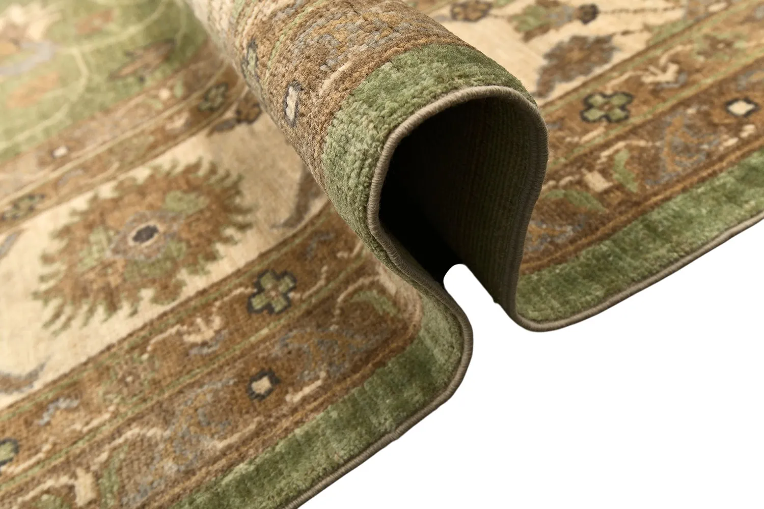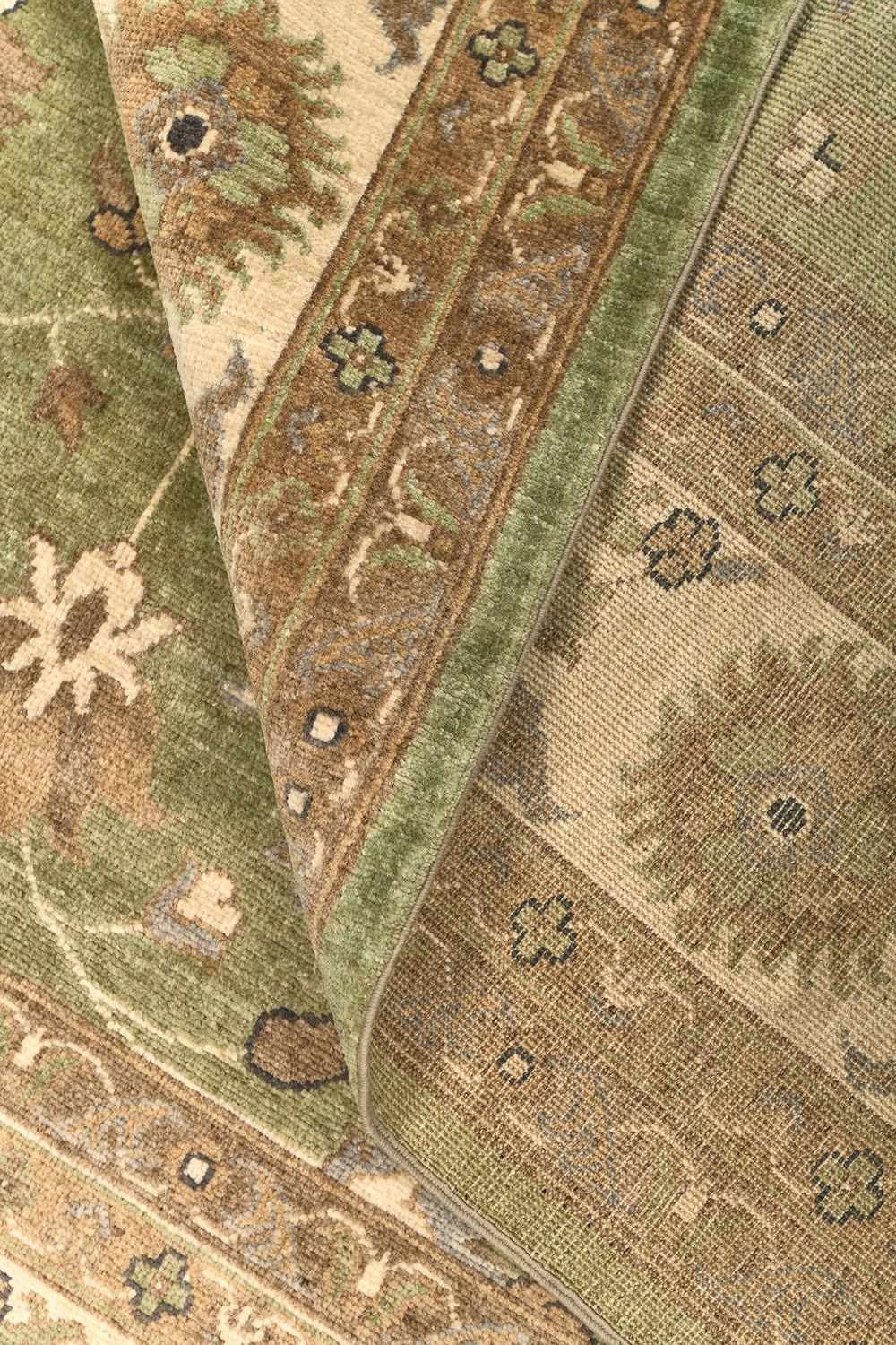 Этот ковер Ziegler ручной работы сочетает благородные зеленые и бежевые оттенки, украшенные растительным орнаментом в классическом стиле. Его богатая цветовая гамма с мягкими контрастами создает гармонию и уют, подчеркивая элегантность интерьера. Сотканый по старинной технологии из шерстяной нити веретенной крутки с использованием натуральных красителей, он отличается прочностью и неподвластной времени красотой.